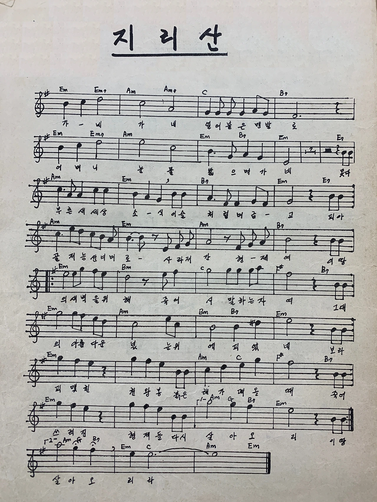 P.S 꼴굿떼 92학번 후배 A.J.M(일명 아줌마)로부터 지리산 악보와 통일노래한마당 관련 자료를 구해 덧붙인다.