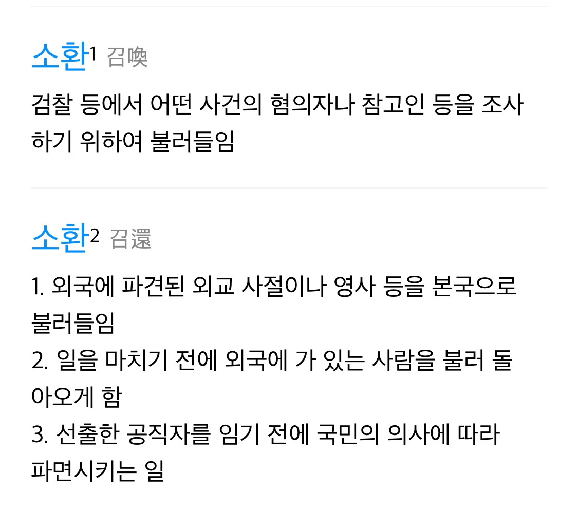 다음 사전에서 찾아 본 “소환”의 사전적 의미