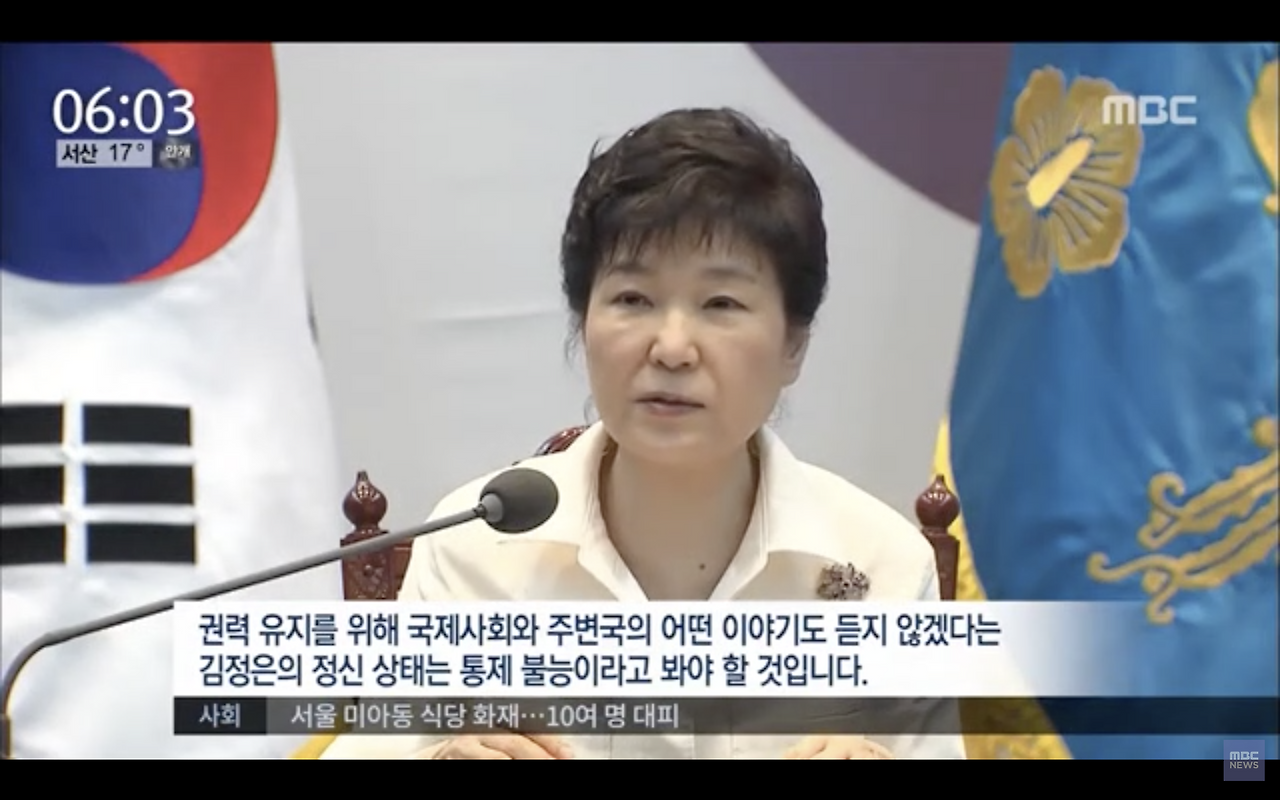 과거 박근혜 대통령은, 아니 역대 보수 정권은 늘 북한의 도발을 무기 삼아 국민에게 지지를 호소했다. 이른바 북풍이라고 하는 공포 마케팅이다. 박근혜 대통령은 언론을 통해 북한의 김정은 위원장을 예측할 수 없다고 자주 언급했다.