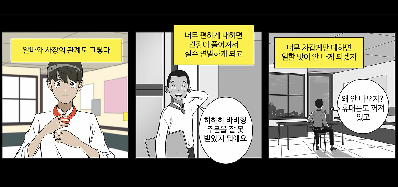 이동건의 네이버 웹툰, "유미의 세포들"에 등장하는 유미의 남친이자 떡볶이집 사장인 바비는 샤워기의 물 온도를 조절하며 알바를 어떻게 대할지 고민한다. 알바에게 따뜻하게 대하자니 일을 게대로 안 할까 봐 걱정이 되고, 너무 차갑게 대하자니 금방 그만둘까 걱정이 되는 것이다. 만약 문재인 대통령이 공약한 대로 최저 임금 1만 원 시대가 열린다면, 그리고 알바를 해도 생활이 가능한 시대가 된다면, 지속 가능한 불행을 감내해야 하는 정규직 일자리 경쟁은 많이 줄어들지 않을까?