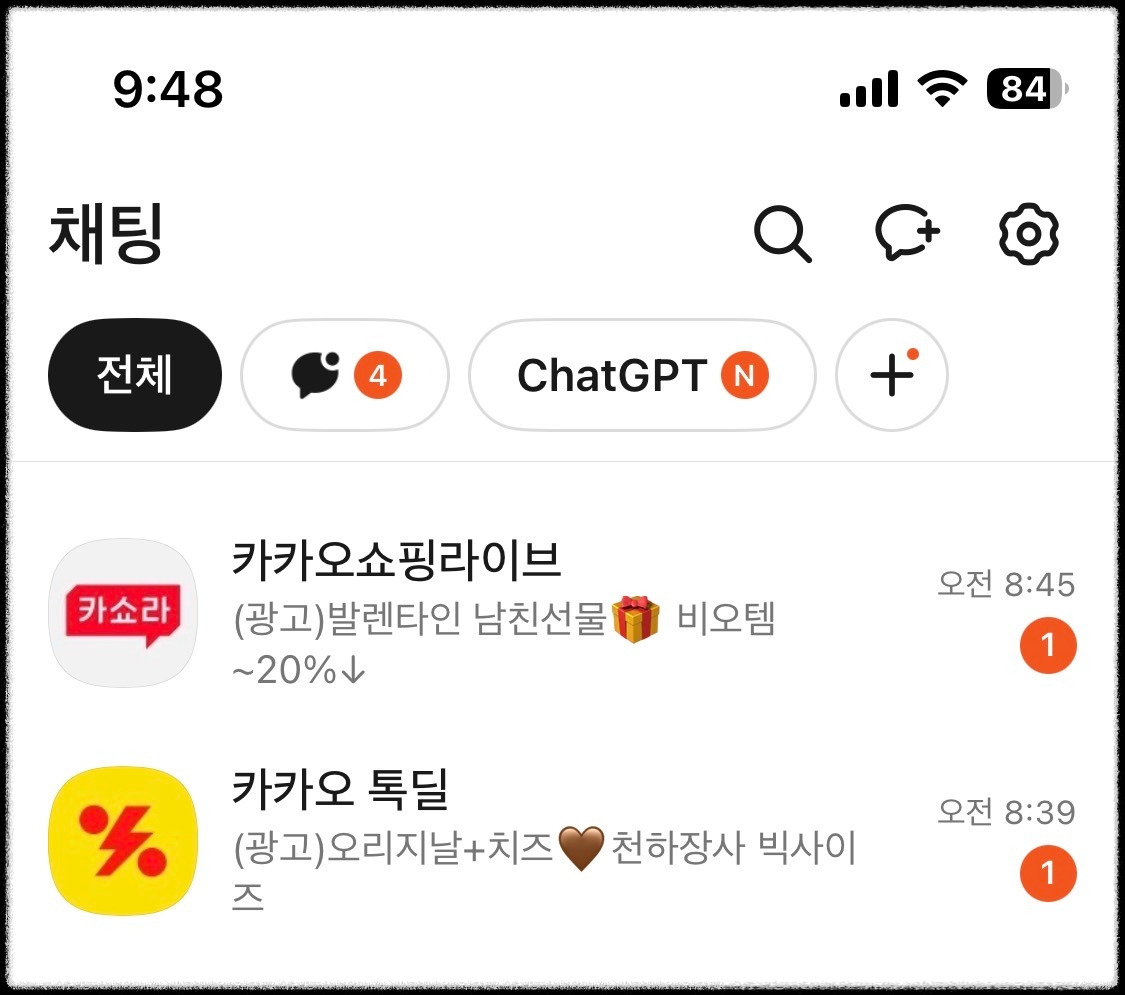 카톡을 열어보면 나도 모르게 추가되어 있는 광고 카톡들이다.