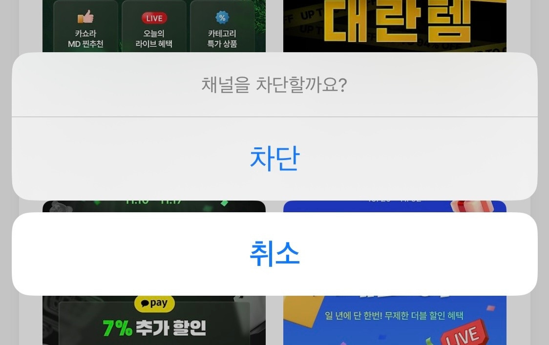 차단을 누르면 진짜 차단할 건지를 묻는 해당 채널의 1차 저항이 시작된다.