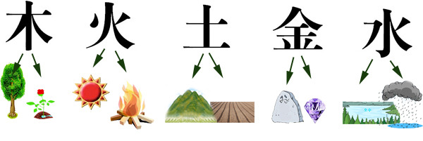 목(나무), 화(불), 토(흙), 금(쇠), 수(물)
