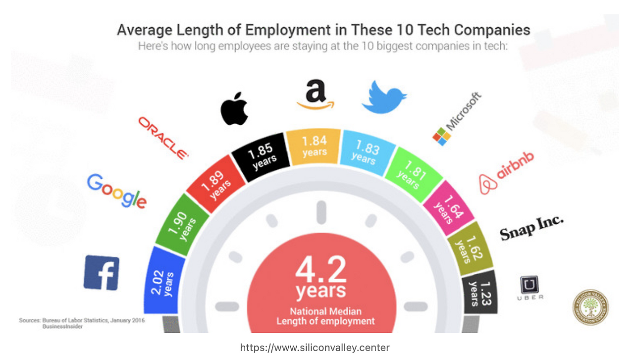 "대기업"이 완벽하게 정의가 되어있는 것은 아니다. 한국에서 대기업이라고 하면 삼성, 현대, 엘지등과 함께 요즘 IT분야에서 많이 주목을 받고 있는 카카오, 다음, 그리고 쿠팡등이 들어가듯이 여기서도 꼭 FAANG만이 대기업 취급을 받는 것은 아니다. AirBnb, Uber, Twitter, LinkedIn, Snap 등 그래도 일반인에게 많이 알려진 회사들도 있지만, Salesforce, VMware 등 일반인이게 잘 알려져 있지는 않지만 오랫동안 꾸준히 좋은 성과를 낸 회사들도 많고 규모가 상당한 회사들도 실리콘밸리에 많다. 꼭 실리콘밸리에 본사가 없다고 하더라도 Tech 쪽에 큰 자리를 지키고 있는 IBM, MicroSoft, Intel, Oracle 등도 무시할 수 없는 대기업들이다.