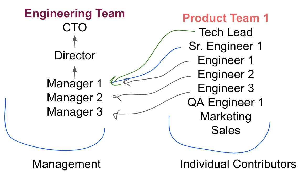 먼저 업무능력 평가에 들어가기 전에 팀의 구조에 관해서 잠시 설명하겠다. 물론 회사마다 명칭도 약간 다르고 얼마나 많은 사람들을 관리하느냐에 차이는 있지만 실리콘밸리의 거의 모든 회사가 비슷한 구조들을 가지고 있다.