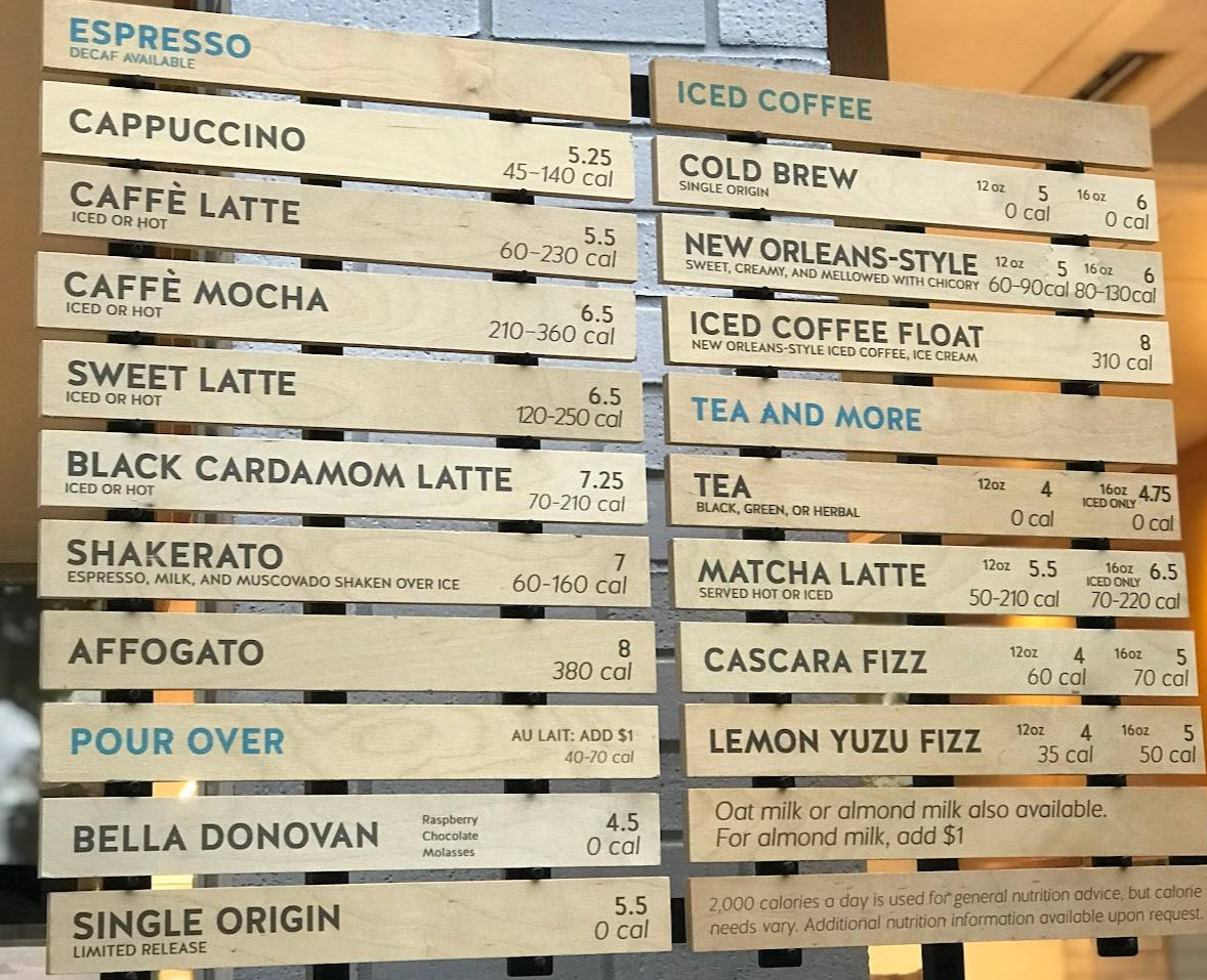 TRUE. 물가가 많이 올랐다. 한국만큼이나 올랐다. 이번달(2023년 6월) 소비자 물가지수는 0.4% 지난달보다 높고, 전년 대비 +5.3%를 찍었다. 물론 지난해 말보다는 안정적 추세를 보이고 있지만, 문제는 실리콘밸리도 올해 그리고 전년도 월급이 생각만큼 많이 오르지 않아서 실제 체감 물가지수가 많이 오른 것처럼 느껴진다. 참고로 아래의 사진은 Bluebottle 작년 가격이고 지금은 0.75센트 더 올라서 카푸치노가 $6 그리고 라테가 $6.25이다.