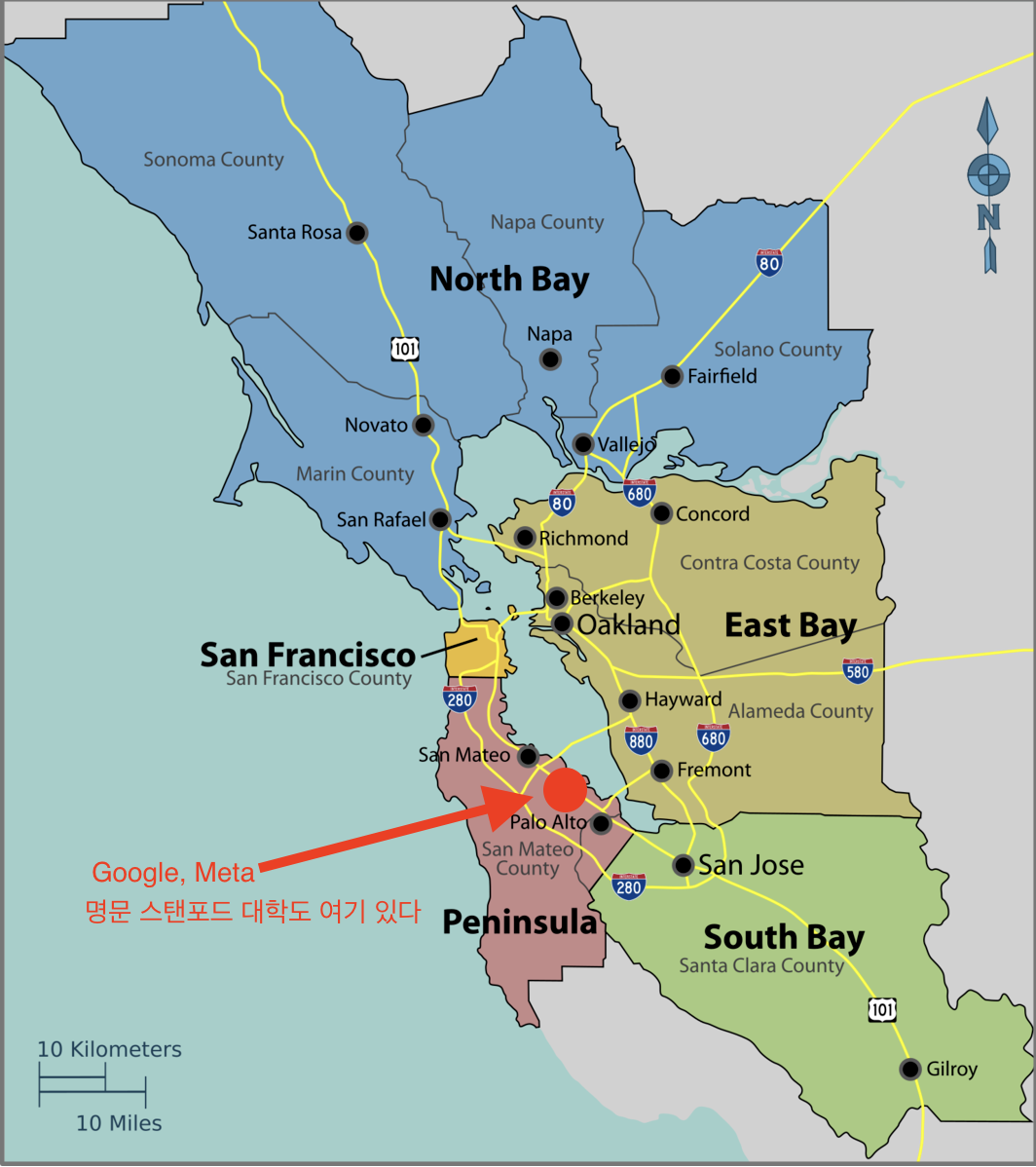 처음 구글과 메타 근처에 월세를 마련하고 낮에 개와 산책을 할 때 몇 번을 사람들이 나에게 혹시 dog walker냐고 물었다. 개를 직업적으로 돌보는 사람이냐고 묻는 것이다. 그냥 아니라고 하고 웃어넘겼지만, 이런 질문을 받아본 적이 없어서, 약간 의아했었다. 또 한 번은 우리 집에 경찰이 2명 찾아와 벨을 눌렀다. 다른 게 아니라, 주변에 있던 다른 주민들이 이 집이 버려진 집인데 누가 무단침입으로 살고 있다고 경찰에 신고를 했다는 것이다. 경찰은 우리 집에 들어와서 주위를 한번 둘러보고는 어이가 없다는 듯이 미안하다고 사과를 하고 갔다. 난 그때는 아마 누가 집 번호를 잘못 알고 신고를 했나 보다고 생각을 했는데 그 이후에 우리 집으로 협박 비슷한 쪽지가 왔다. 우리 집 앞마당에 잡초가 무성하다면서 즉시 정리하지 않으면 이번에는 경찰이 아니라 소방관을 부르겠다는 쪽지였다. 그 동네에서 1년에 한 번 하는 block party에 가면, 누구네 누구는 구글에서 일하고, 누구는 페이스북에서 일한다고 자랑하는 사람들이 많았다.