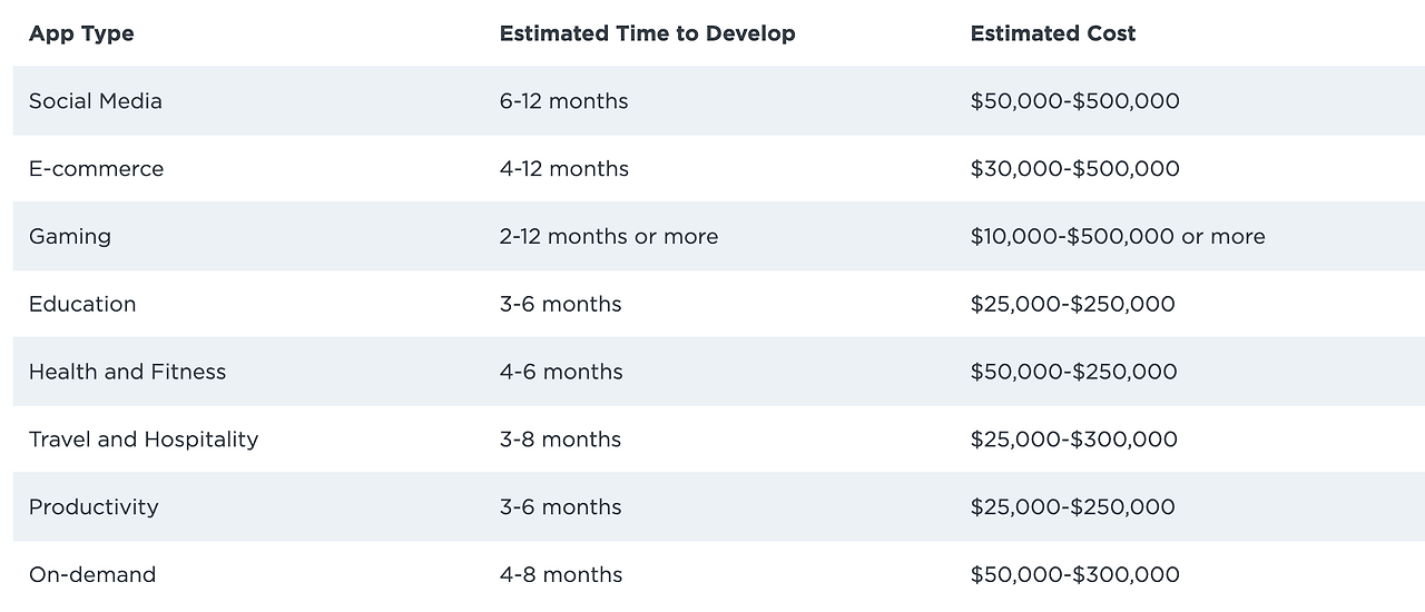 재미있는 자료가 있어서 하나 가져왔다. 웹사이트 만드는데 얼마나 들까? 참고로, 이것은 그냥 "만드는데 드는 돈과 시간"이다. 앞서 말했듯 앱은 만들고 나면 유지비용이 만드는 것보다 더 든다.