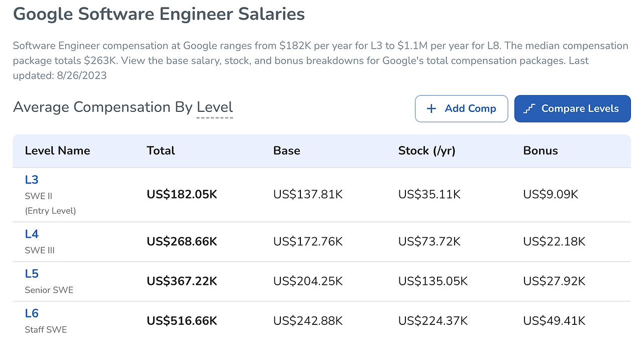 간단한 예로, 구글 엔지니어 Level3 또는 Level4의 연봉이 $150,000이고 보너스가 $15,000, 주식이 년간 $50,000이라고 가정했을 경우, 실제로 받는 퇴직금은 재직연수에 따라 다르지만 약 $80,000 - $100,000 정도, 우리나라돈으로 1억에서 1억 3천이나 5천 정도가 되겠다.