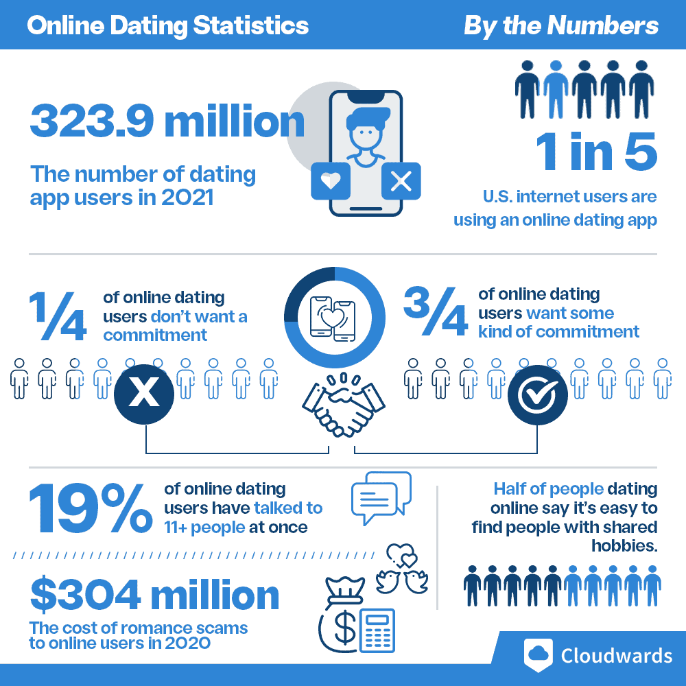 이 것은 미국을 바탕으로 한 조사입니다. 5명 중 1명 꼴로 온라인 데이팅 앱을 이용하고 있고, 50%의 사람들이 온라인 앱을 이용해서 자기와 비슷한 관심을 가지고 있는 사람을 만날 수 있다고 합니다.