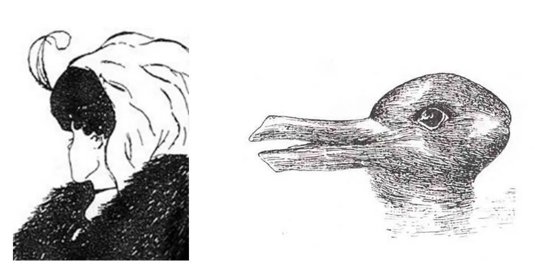 각도에 따라 다르게 보이는 것을 이야기할 때 흔히 언급되는 것이 있는데, 바로 '다의도형(多義圖形, ambiguous figures)'이다. 하나의 도형인데 보는 방법에 따라 두 가지 이상의 형태를 볼 수 있다. 오스트리아 철학자 비트겐슈타인의 '토끼-오리', 영국 만화가 윌리엄 엘리 힐의 '아내와 시어머니'가 대표적이다. 전자는 오리를 생각하면 오리가 보이고, 토끼를 생각하면 토끼가 보인다. 후자는 젊은 부인이 보이면서, 코와 턱이 큰 노파로 보이기도 한다.