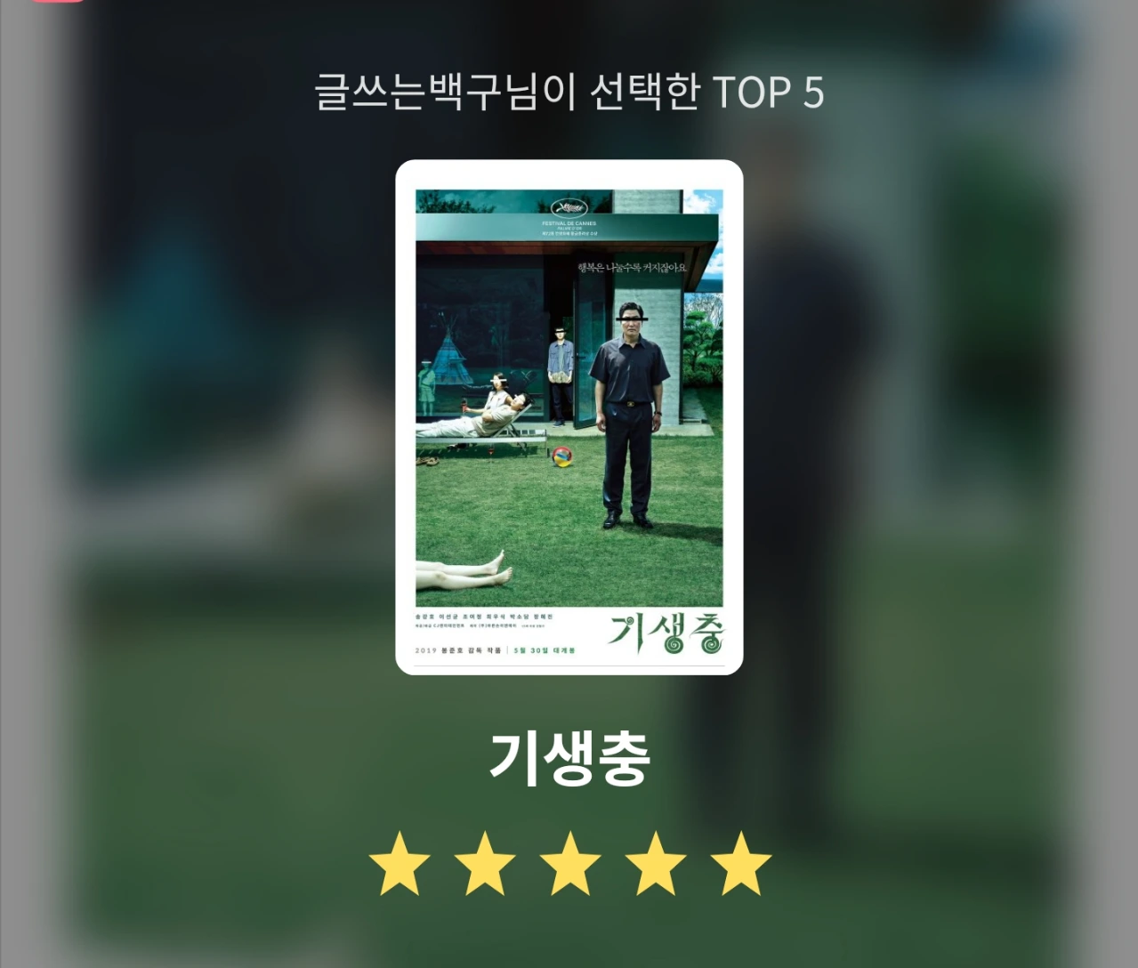 올랐습니다. 그중 봉준호 감독의 <기생충>에 대해 가장 좋은 평가해둔 것이 뿌듯하네요.