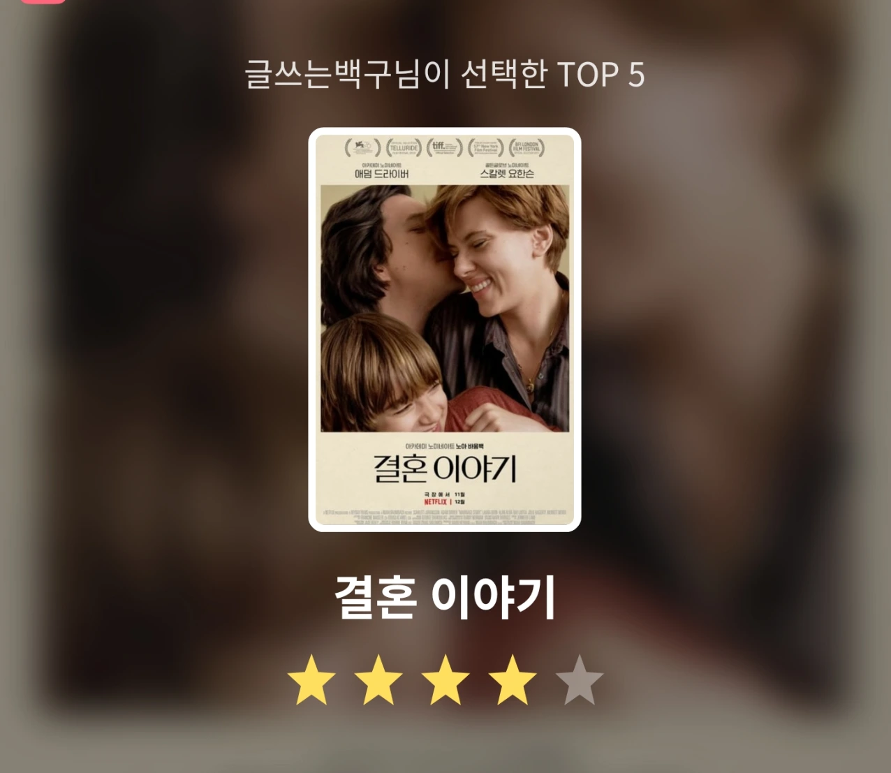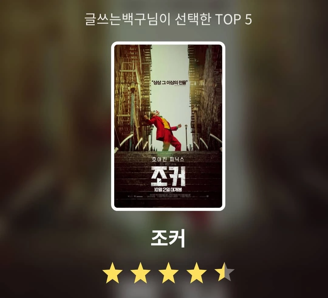 2019년, 한 해동안 왓챠에 기록한 영화들 중 TOP5를 올립니다.