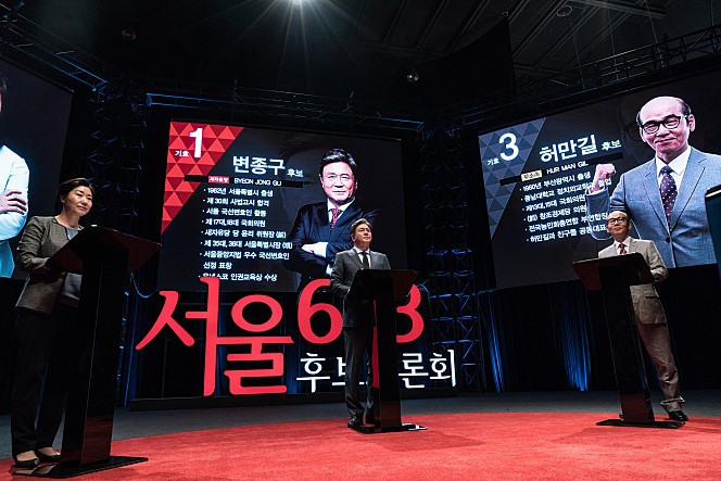 그리고 영화 속에서 서울시장 후보 TV 토론은 ‘스탠딩 토론’으로 진행했다. 이 부분은 우연하게도 실제 상황과 맞아떨어진 예언이라고 할 수 있다. 대선이 앞당겨질 것을 전혀 예상할 수 없었던 작년 봄부터 여름까지 촬영한 이 영화에는 '스탠딩 토론'이 등장한다. 당시 미국 대선이 진행 중이었고 도널드 트럼프 후보와 힐러리 클린턴 후보의 스탠딩 토론이 화제에 오른 것으로 보면 놀라운 일은 아니다. 그러나 이번 중앙선거관리위원회 주관 19대 대선 후보 토론에 스탠딩 토론을 도입했다는 것과 겹치면서 영화는 현실성을 획득했다.