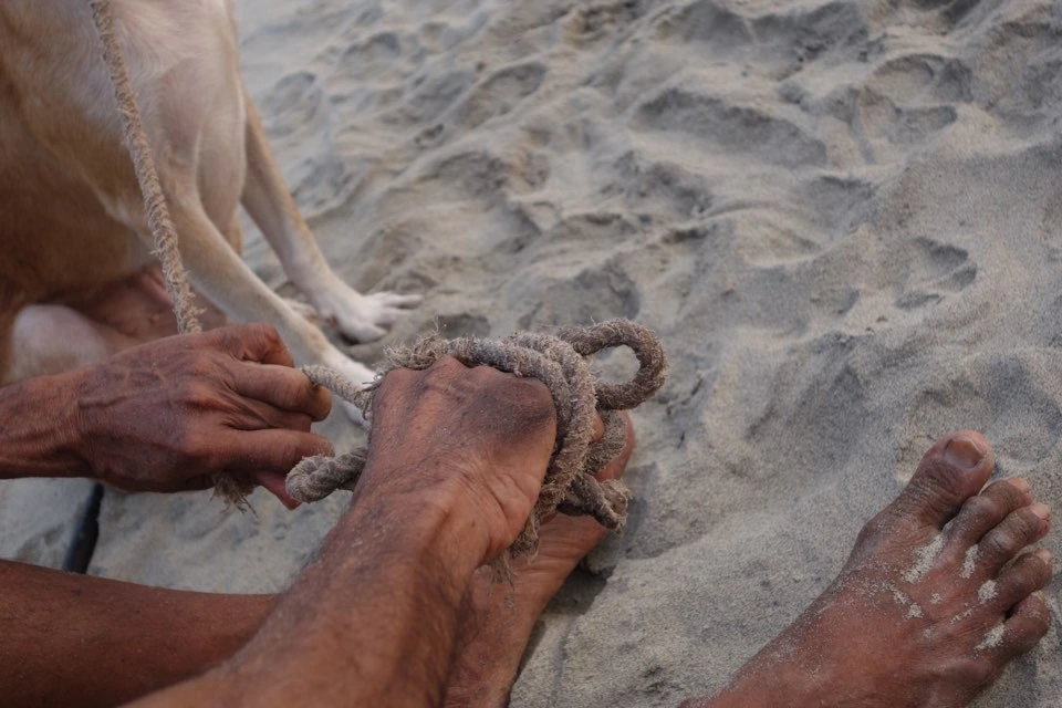 전혀 생각하지 못한 전개였다. 물어볼 게 한두 가지가 아닌데 들을 수 있는 대답이 없다는 불안감이 생기기 시작했다. 이렇게 포기하기는 싫다는 생각이 일단 대충 철판을 깔자는 심정으로 이어졌다. 최대한 미소로 인사하며 옆에 앉았다. 강아지를 보니 목에 노끈으로 인한 곪은 상처가 보였고 그곳에는 더 이상 털이 나지 않고 있었다. 얼마나 아팠을까. 도망치고 싶지는 않을까. 끈을 꽉 쥔 할아버지의 두 손을 보니 도망치기도 쉽지 않아 보였다. 마치 잘못된 사랑을 보는 것 같은 느낌까지 들었지만 이야기를 듣기 전까지는 무엇도 속단할 수 없는 일이었다. 그들 사이의 이야기를 들을 수 없다는 사실이 더 안타까워졌다.
