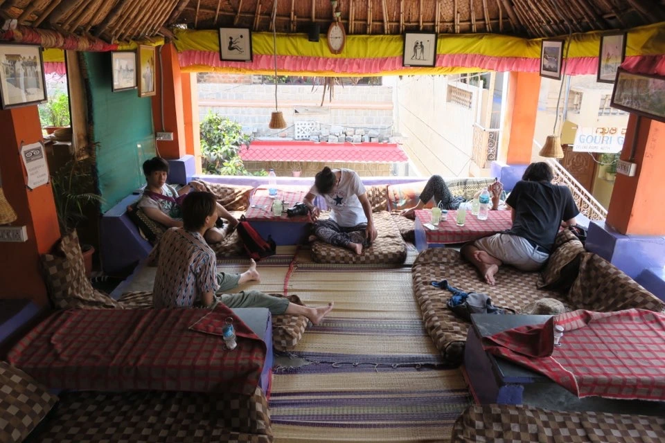 함피에 지낸 지 일주일, 방갈로르로 떠나는 저녁이 다가왔다. 일몰을 보러 나가는 카츠야상과 따뜻한 마지막 인사를 나누고, 리안, 지현과 마지막으로 끼니를 때우러 망고트리 레스토랑을 찾았다. 함피도 이제 끝이구나... 왠지 모르게 평소에는 잘 먹지 않던 팔라펠을 주문했다. 짜파티를 찢고 팔라펠 조각을 채워 입에 구겨 넣으며 건너편에 앉은 리안의 뒤통수 너머 벽에 걸린 시계를 힐끔힐끔 쳐다보았다. 세 시간... 두 시간 반... 기차를 타기까지 남은 시간을 세며 지난 함피에서의 시간을 떠올려 보았다.