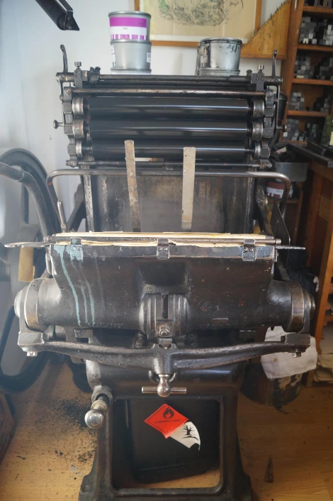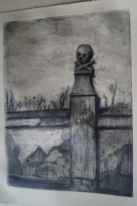 예술가는 엣칭 기법을 보여줬다. 그림을 금속판에 새겨, 산화용액에 부식시켰다. 다음 날, 우리는 작업실에 갔다. 좁은 공간은 거대한 기계 한대가 차지했다. 홈이 파인 금속판에 잉크를 칠했다. 뒷뜰에 산책하던 나는 종종 울려 퍼지는 오페라음악과 검은색 등을 마주쳐도, 들어갈 엄두가 나지 않았다. 그가 동굴을 빠져 나올 땐, 두손이 새까맣게 그을렸다. 판을 들고, 아뜰리에로 갔다. 액자와 공구에 가려졌던 기계 전체를 처음으로 대면했다. 팔백킬로그램이라고 했다. 인쇄기였다. 기계를 두 팔과 가슴,윗몸 전체 힘으로 눌렀다. 인쇄됐다.