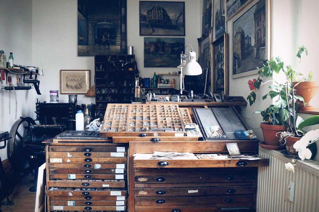 종이 써는 작두, 인쇄기, 책 누르는 쇠, 팔힘을 기르기 위해 산 쇳덩어리 투포환에 열광하는 사람들이 수두룩해요."