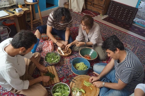 몇 달의 줄다리기 끝에 그날이 왔다. 히치하이킹을 하고, 봉고차를 탔다. 단발 곱슬머리, 다리에 기부스를 하고 목발을 짚은 남자가 마중나왔다. 언덕에 자리잡은 옛날 목조 가옥에 도착했다. 주인 커플, 테헤란에서 온 커플, 단발머리 통역친구 커플. 모두 여섯명이었다. 여행을 하다가 만난 사이라고 했다.