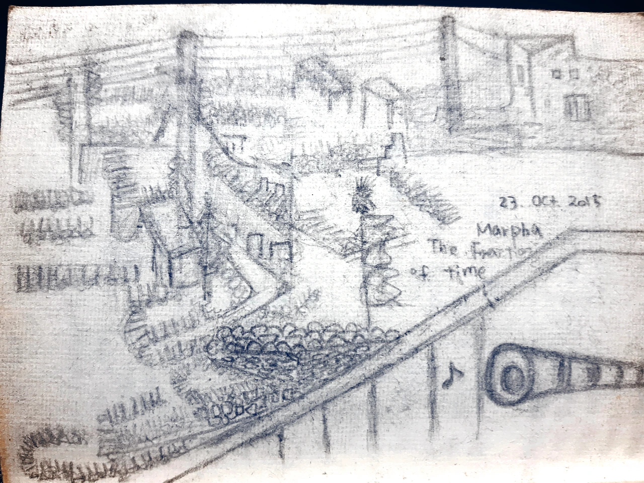 어떻게든 붙잡아 두고 싶었다.가방을 내려놓을까 말까 망설였다. 사원 문 앞에서 들어올까말까처럼, 산에서도 걸어야 할 총량 같은 게 있어서 원하는 게 있어도 머뭇거릴때가 많다. 생명유지, 트레킹에 꼭 필요한 게 아니라면.그런 점에서는 산 밑에서의 삶과 별반 차이가 없다. 어찌된건지 에라 모르겠다 라는 심정으로 계단 구석에 앉았다. 배낭은 발밑에 두고 지붕을 그리기 시작했다. 사람들의 시선을 아랑곳 하지 않았다. 사원에서 누군가 나와 내 수첩을 보다 금새갔다. 구경꾼은 대단한 그림을기대했다가 시시해졌음에 틀림없다. 아직은 흩어진 선 뿐이었으므로.