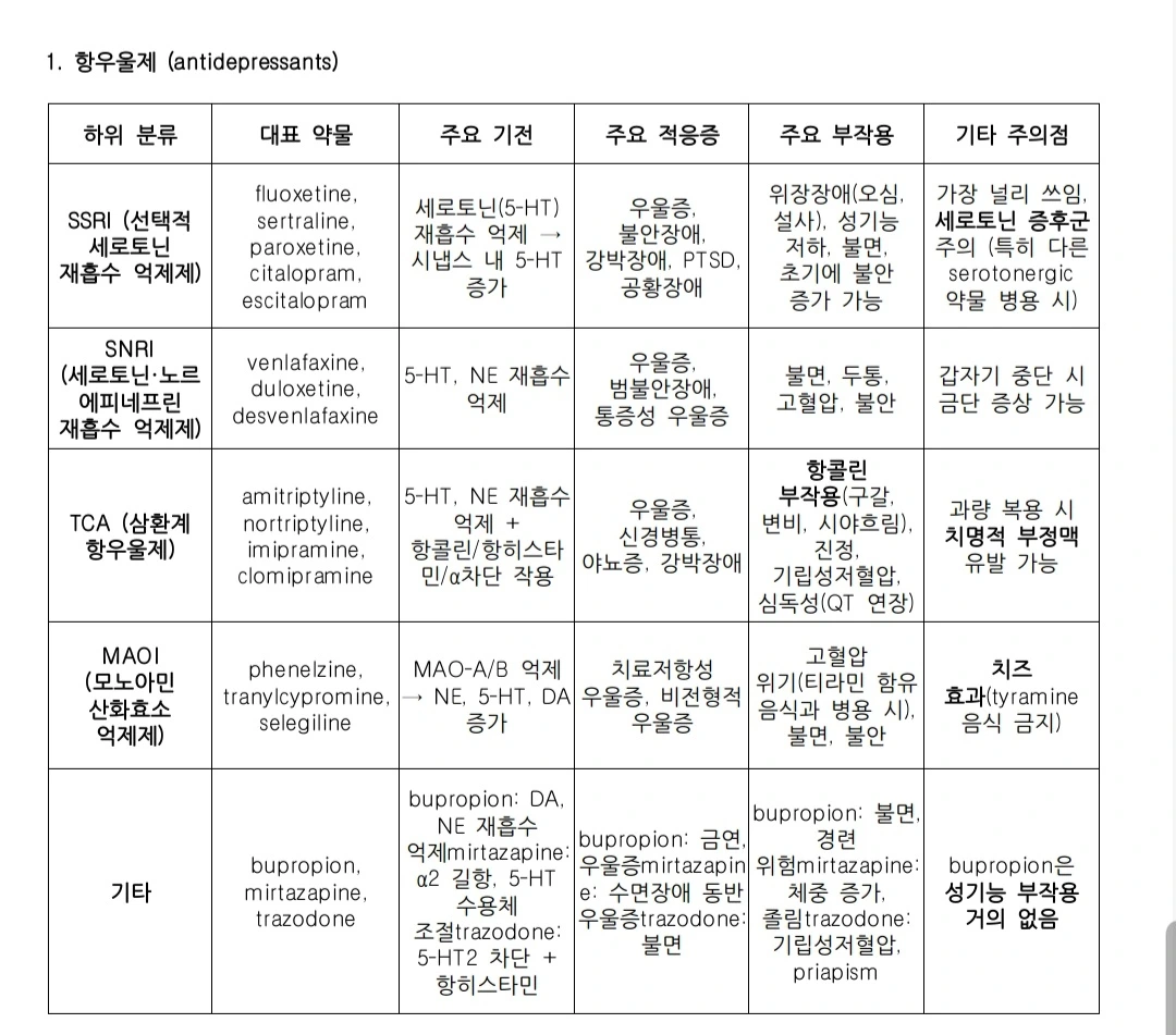 정신과 약물에 대해 정리해 보았어요! :-)
