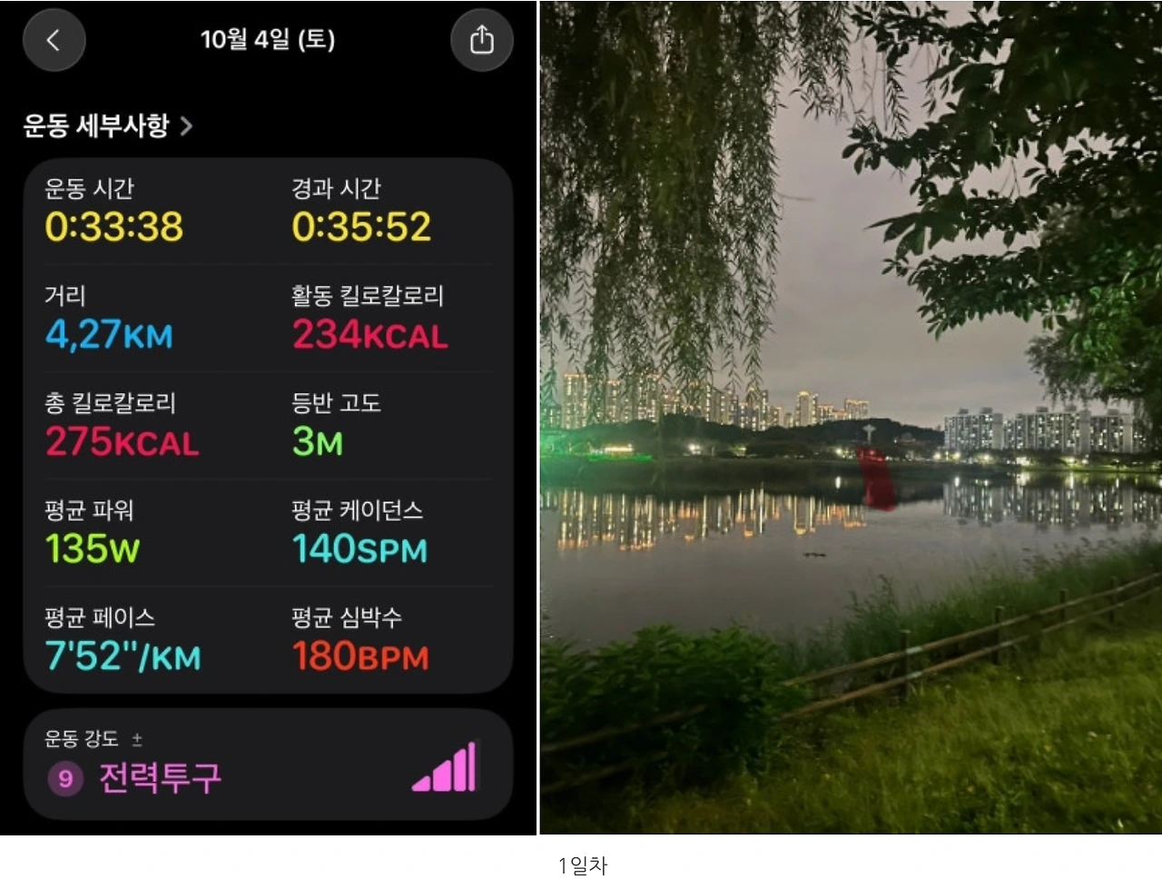 어제보다 더 가벼운 마음으로 러닝목표를 4km로 정한 뒤 달렸다.