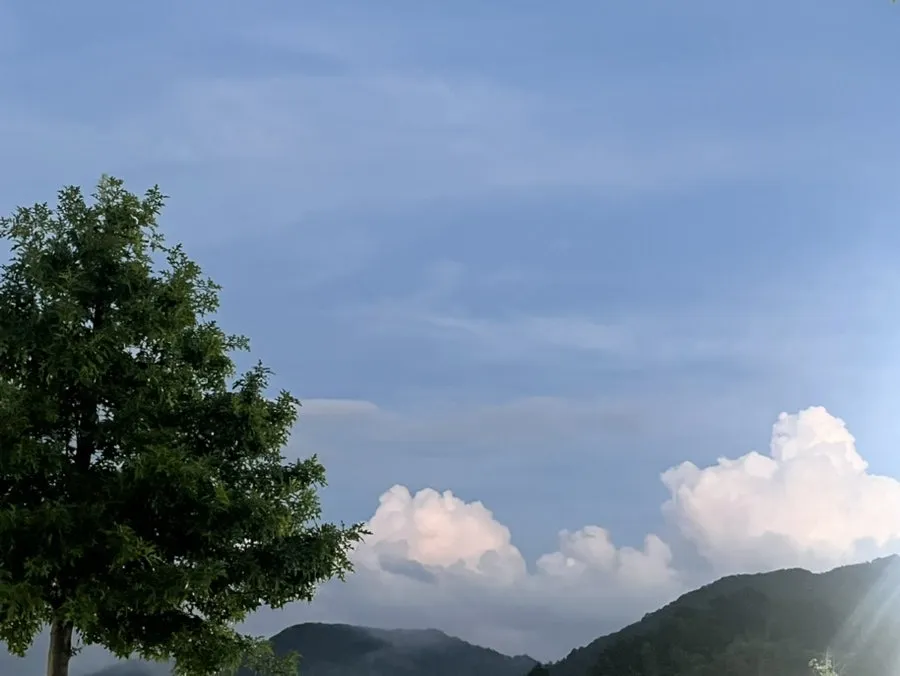 시야가 탁 트이고, 반짝반짝, 하늘, 숲이 시야에 가득 들어와요)