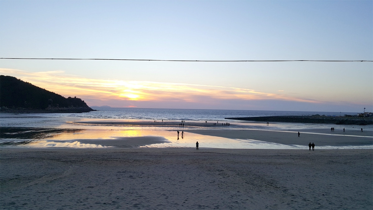 썰물이 지고 있었다. 빠지는 물을 끝까지 쫓아갔다. 바닷물에 발을 담그고서야 안심이 되었다. 검붉게 타오르는 하늘을 보면서 걸었다.