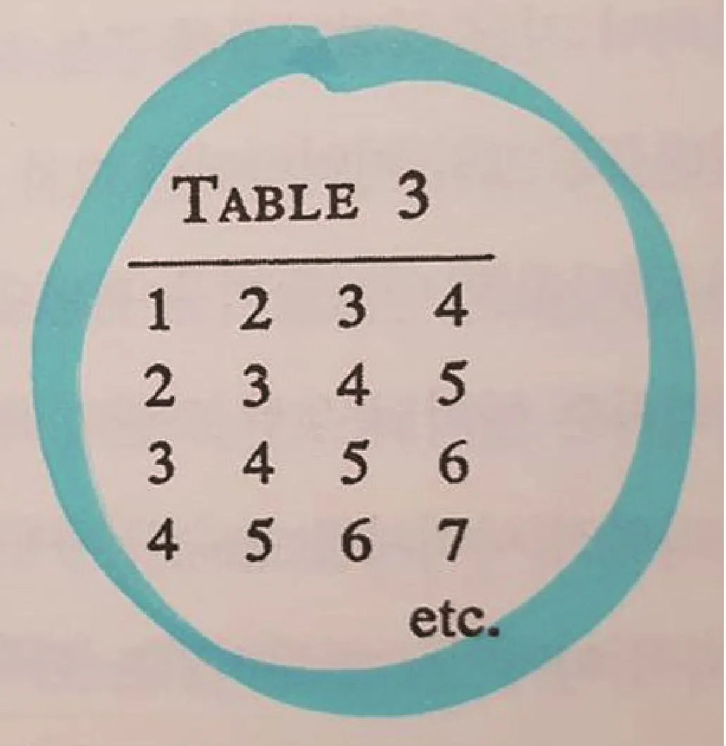 사진 같은 기억력이 아니라 상황을 해석하는(아는 만큼 보는 유령을 가진) 보통사람이라면 위 그림의 가로세로 숫자들이 그저 순서대로일 뿐이라는 것을 금방 압니다. 외울 필요도 없지요. 그러나 이 기억술사는 이 숫자판을 ‘사진 같은 기억술’을 통해 기억하기 위해 정신을 집중해야 했지요. 나중에 그는 이 숫자판의 의미에 대한 설명을 듣고 나서는 ‘알파벳이 순서대로 배열되어 있었다고 해 도 그 의미를 몰랐을 것’이라고 말했다고 합니다.