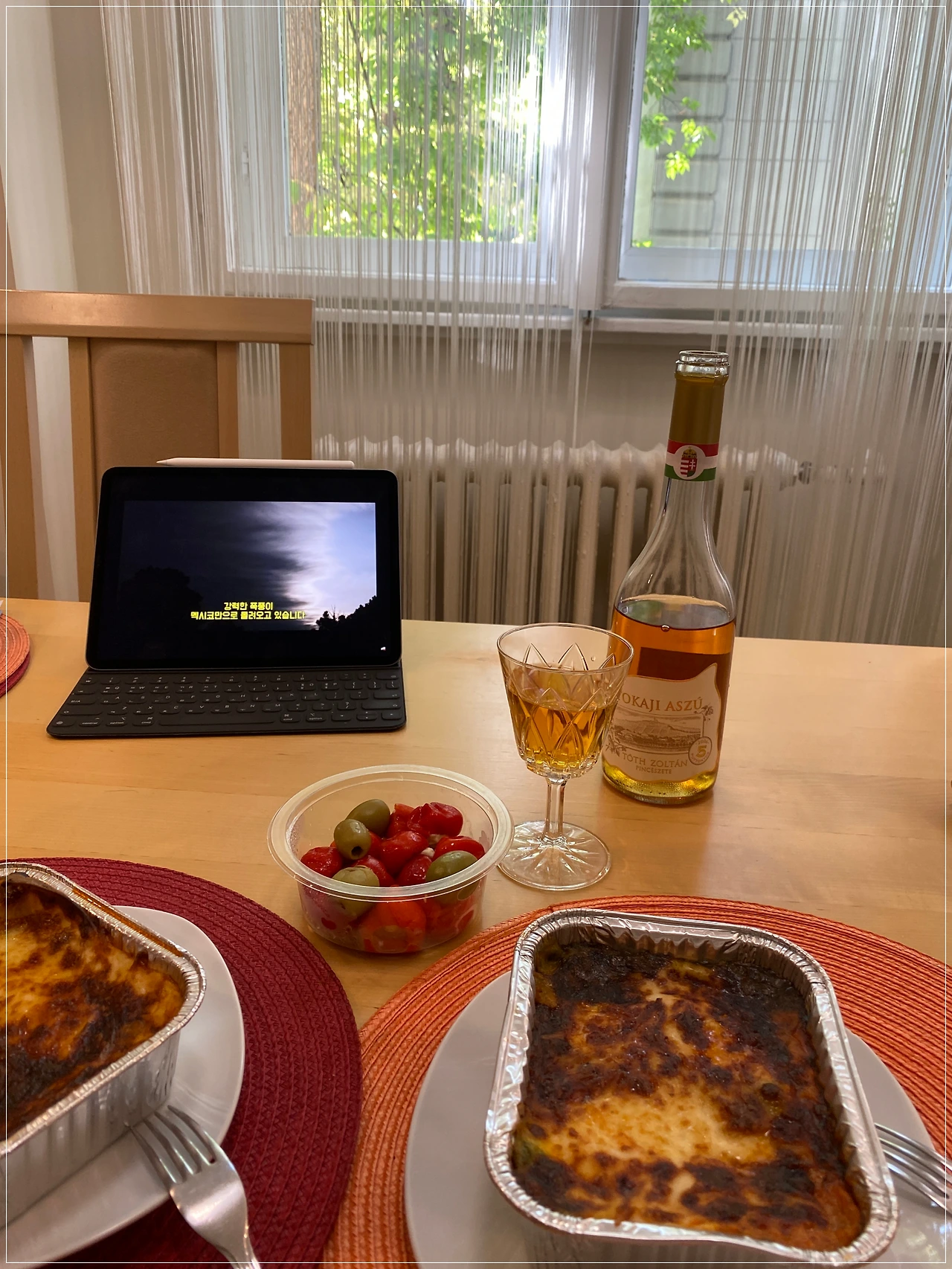 집 앞 마트에서 헝가리에서 유명하다는 토카이 와인과 라자냐, 감자칩 등을 사왔다.