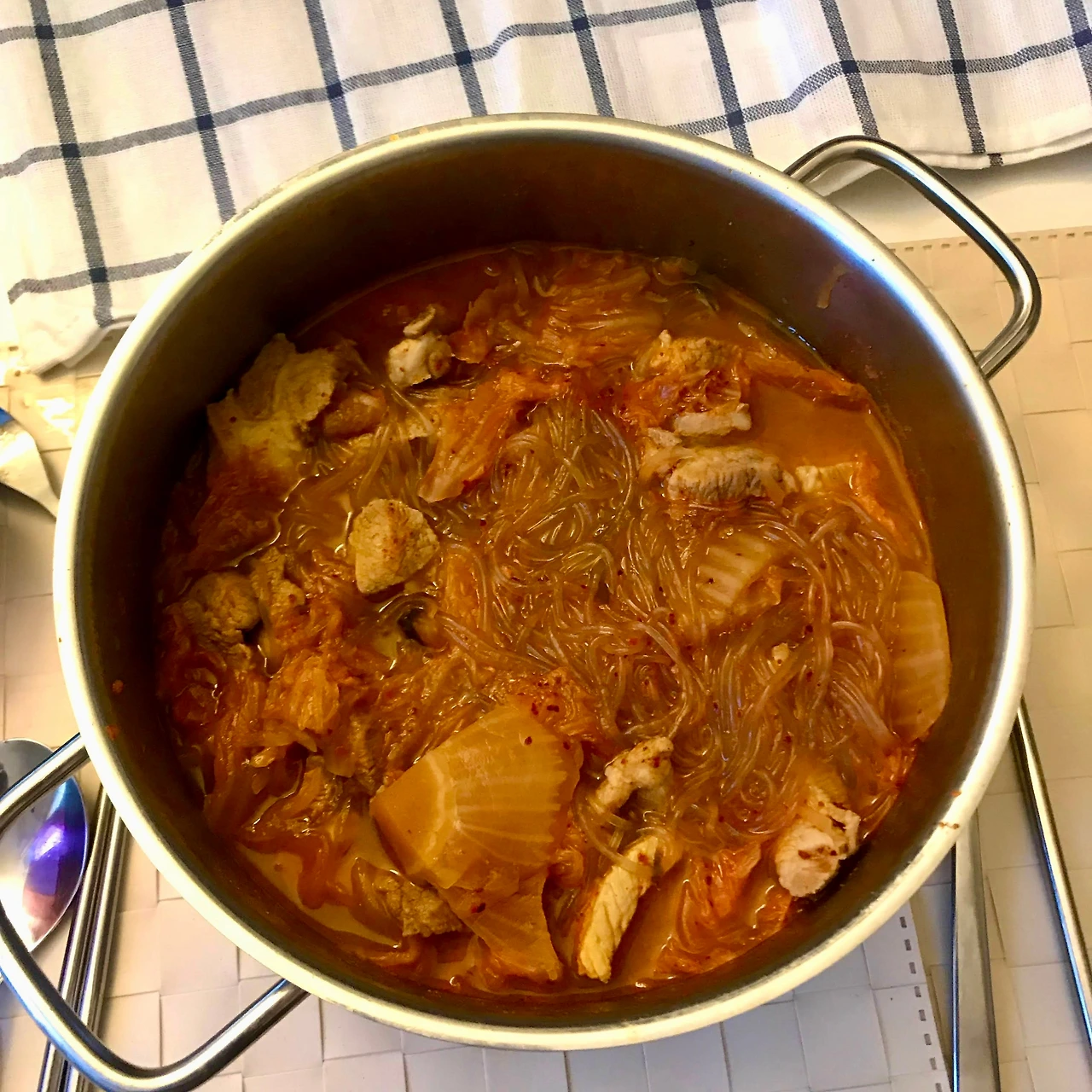 좁은 복도 끝에서 반 나선형의 좁은 계단을 오르자마자 맞닿아 있는 작은 문을 또 다른 열쇠로 연다. 1층보다 면적이 작은 2층엔 동생이 살고 있는 이곳 한 세대뿐이다. 문을 열고 들어서면 바로 거실 겸 주방이 나오고 한쪽 끝에 작은 방이 있다. 그 방 안에 작게 화장실과 샤워실이 붙어있다. 파리에 혼자 가게 되면 늘 머무르는 곳이라 나에게는 ‘동생 집’ 이상의 의미가 있는 장소였다. 몇 번 와 봤다고 정이 들었는지 친정에 갔을 때와 비슷한 안락감마저 들었다. 하지만 이때는 몰랐지. 이런 기분을 느낄 수 있는 것이 이번이 마지막이라는 것을. 도착하자마자 대충 짐을 풀고 김치찌개를 끓였다. 동생은 파리에서도 지인 몇몇과 힘을 합해 매년 김장을 담갔다. 한국에서 주부인 나도 한 번도 시도해보지 않은 일을 하는 것이 신기하고 기특하다. 덕분에 잘 익은 묵은지가 자그마한 냉장고의 절반 지분을 차지하고 들어앉아 있었다. 프랑스에서 맛있는 것 중 하나가 고기다. 소고기뿐 아니라 돼지고기도 탄탄하고 육향이 짙은데 특히 여기 사람들이 잘 먹지 않는 삼겹살 부위는 매우 저렴하기까지 하다. 들기름을 두른 냄비에 묵은지를 4분의 1 포기 정도 넣고 지지다가 삼겹살을 두툼하게 썰어 넣고 물을 자박하게 조금만 부어 졸이듯 끓인 후 다시 쌀뜨물을 붓고 다시마를 함께 넣는다. 자글자글 한참 끓이다 마지막에 불려둔 당면까지 넣으면 깊은 맛의 김치찌개 완성!