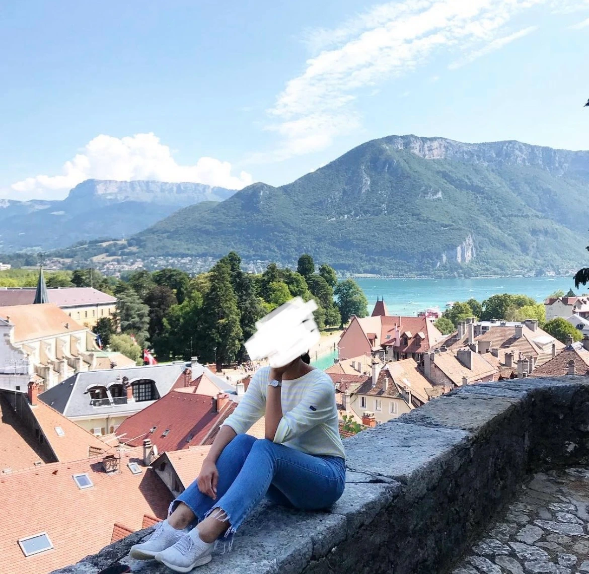 다음날, 돌아가는 기차는 늦은 오후 시간이었다. 어쨌든 돌아가기 전까지는 내 눈앞에 있는 이 아름다운 도시를 최대한 즐겨야겠다는 생각이 들었다. 어제 나를 농락했던 구글맵을 다시 한번 믿고 커피가 맛있는 곳으로 평점이 높은 카페를 찾아가 유럽에서 귀한 진한 라떼를 마셨다. 호숫가 잔디밭에 보자기를 깔고 누워도 봤다. 혼자라서 함부로 졸 수도 없고 가져온 책도 없고 호수를 눈앞에 두고 핸드폰만 보기엔 아쉬워 금방 일어났지만. 내친김에 중세의 모습을 볼 수 있다는 안시성 박물관에도 들렀다. 전시된 유물이나 작품들 보다는 건물 자체와 성곽에서 내려다보이는 안시의 풍경이 정말 예뻐서, 사진 욕심이 별로 없는데 옆에 있던 사람에게 부탁해 한 장 남겼다.