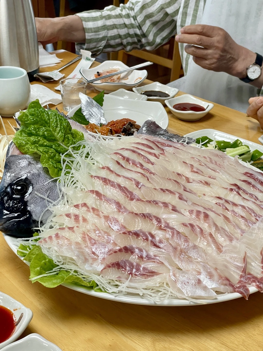 우도에 다녀오던 날, 동선이 안 맞아 포기할까 했던 꼭 가고 싶었던 횟집이 있었는데 생각보다 우도에서 빨리 나오게 되어서 혹시나 하고 전화를 해봤더니 예약 취소가 된 자리가 하나 있다고 해서 기회다 싶은 마음에 2시간 가까이 달려 기어이 갔었다. 아마 아빠나 엄마가 운전했더라면 그렇게까지 힘들게 가지 말자며 대충 근처에서 먹자고 하셨을 거다. 역시나 가는 내내 이렇게까지 해서 먹어야겠냐는 원성이 있었지만 운전자가 괜찮다고 우기는데 별 수 있나. 결국 그날의 식사는 지금까지 먹은 회 중에 가장 고급스럽고 맛있었다고 평가받았다.