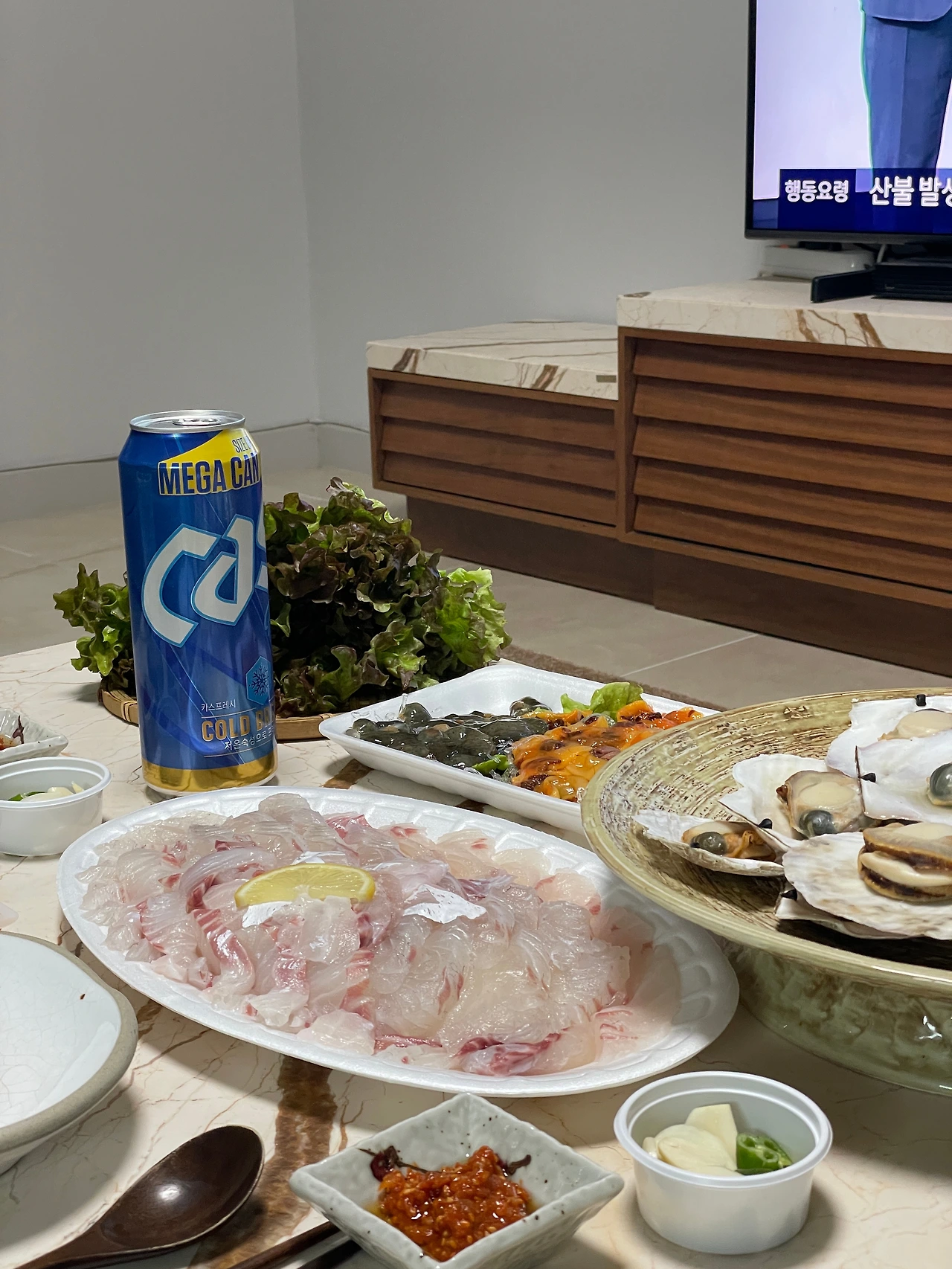 저녁 메뉴는 돼지갈비로 정해두었다. 남편이 ‘우리 엄마는 고기 안 먹어’라고 했지만 내가 살핀 어머님은 단순히 고기여서 안 드시는 게 아니라 육향을 싫어하시는 거였다. 역시나 달짝지근한 양념이 된 고기는 제법 잘 드셨다. 덕분에 회 없이도 하루 일정을 만족스럽게 마무리할 수 있었다.