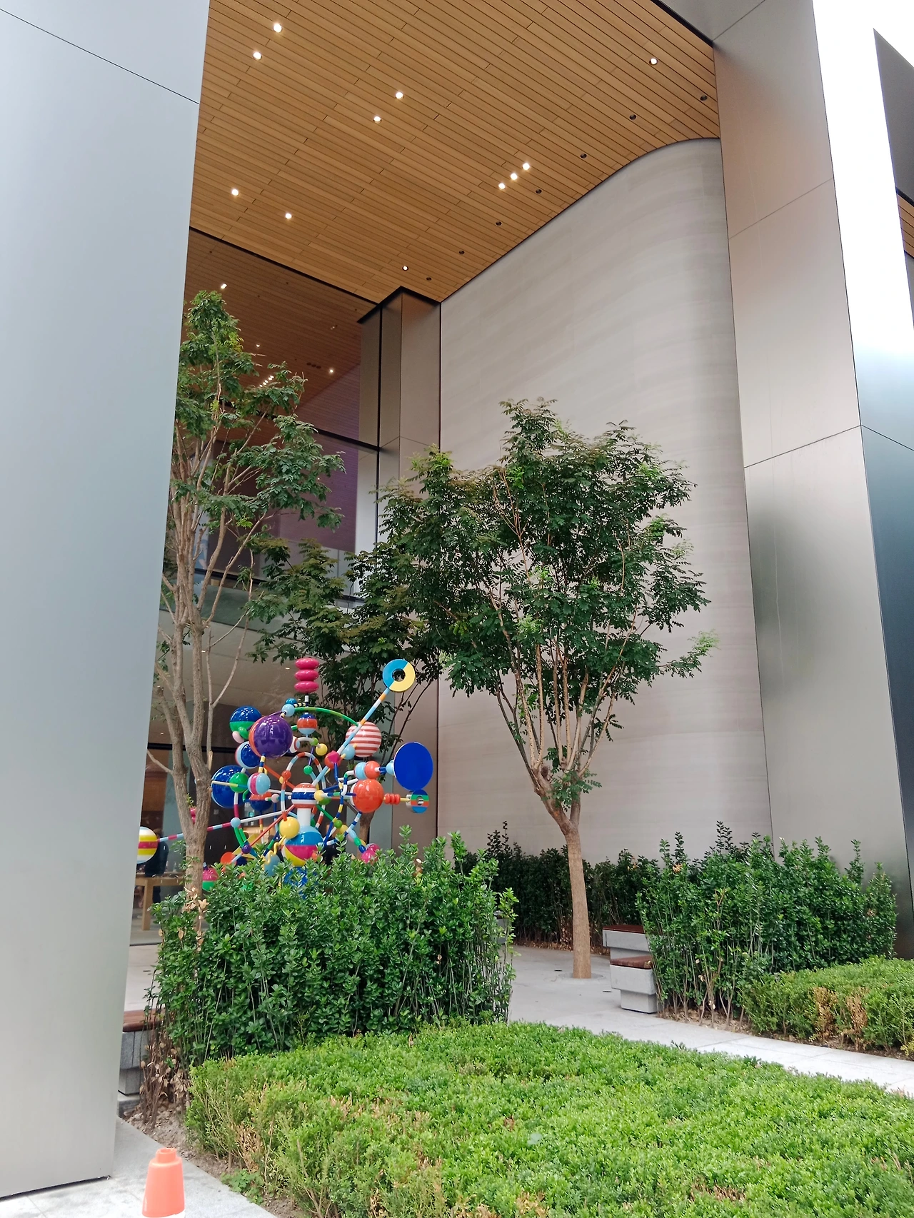 도시의 빌딩 건물 앞 조형물도 큰 매력이었다. 택시, 버스, 승용차를 타고 서울 시내를 누비다 보면 어렵지 않게 읽히는 작품들이 세련되게 친근감 있게 도시건축과 조형예술+식물 조경의 완결된 모습으로 도시를 신선하게, 환하게 호감 가는 표정으로 만들어 놓았다. 오늘은 커피투어, 내일은 건물 앞 조형물 투어.... 일상에서 투어를 즐기는 한국이더이다.