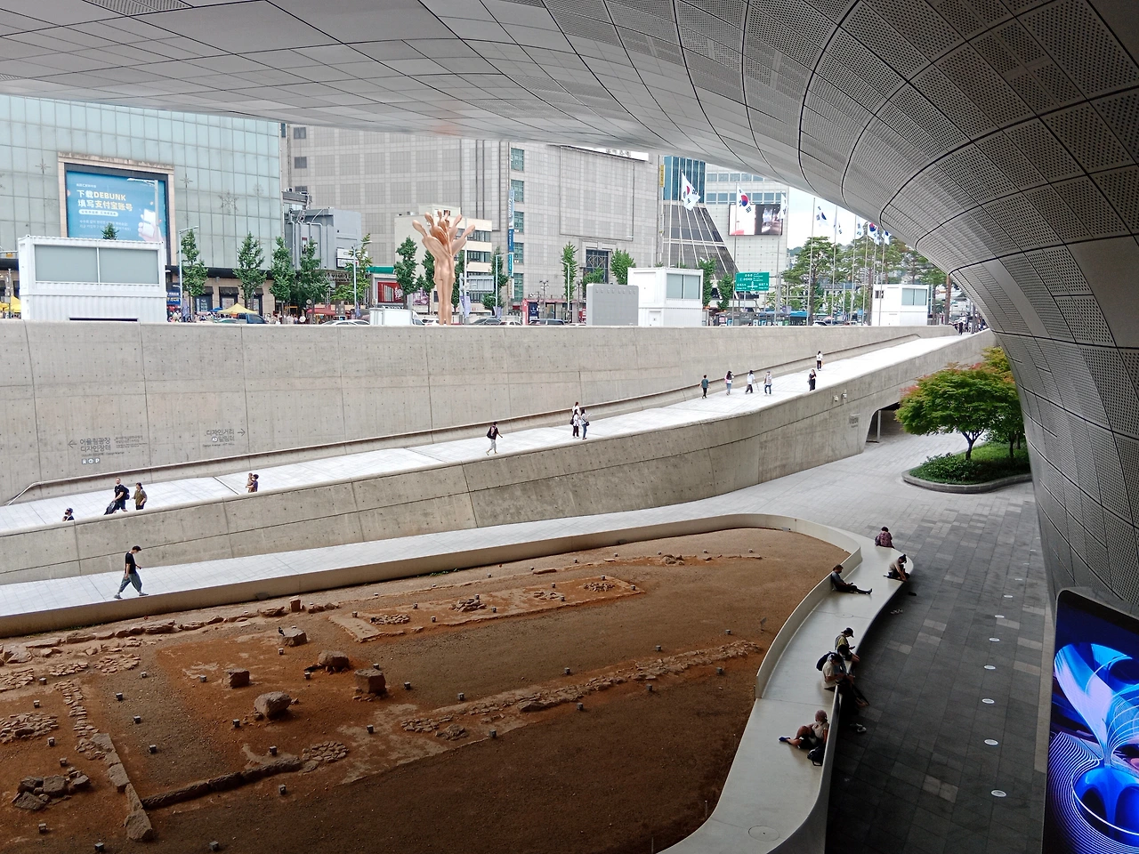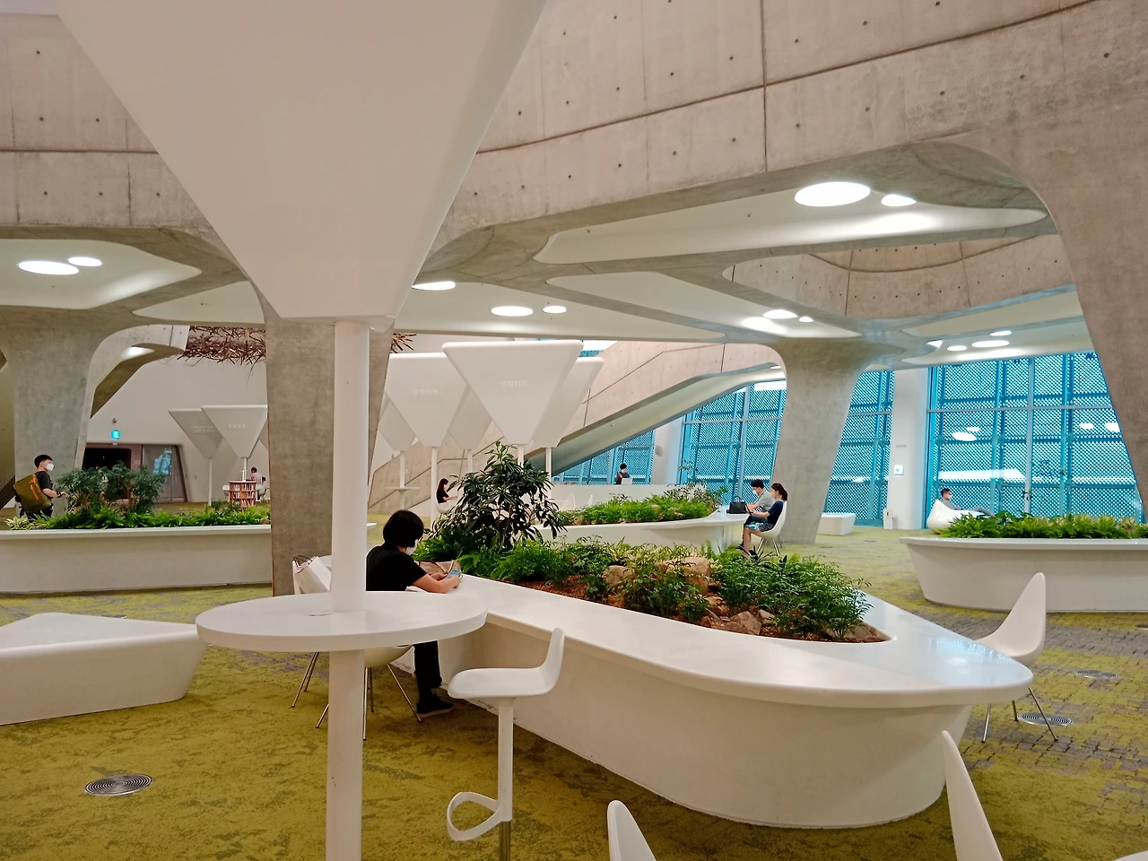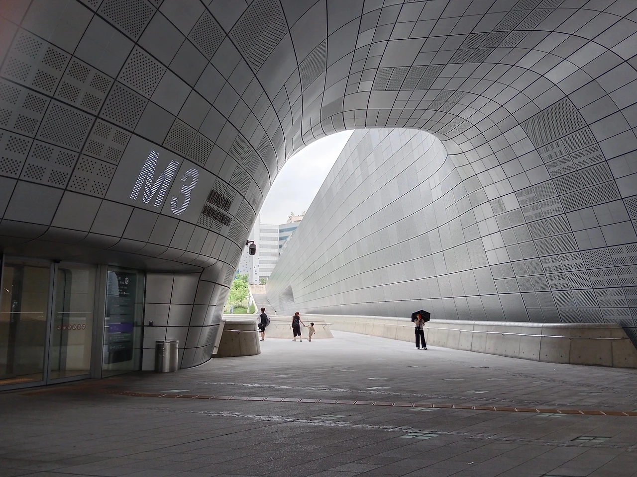 주변 환경을 고려하지 않은 건축물이라는 평이 있는데, 가 보면, 각자의 취향대로 좋기도, 싫기도 마음이 뚝 갈라지겠지. 그러겠지! 건물 자체로만 본다면 건축가 자하 하디드의 독보적인 힘, 혁신의 에너지를 그대로 느낄 수 있었다. 엄청난 둥근 건물의 육체 감에 어디든 뚜렷한 곡선의 동선에 놀랜다. 도심 속 시민들의 쉼터와 디자인 전시 교류의 공간 구성...'복합 문화공간'으로 자기의 역할을 하고 있더이다...