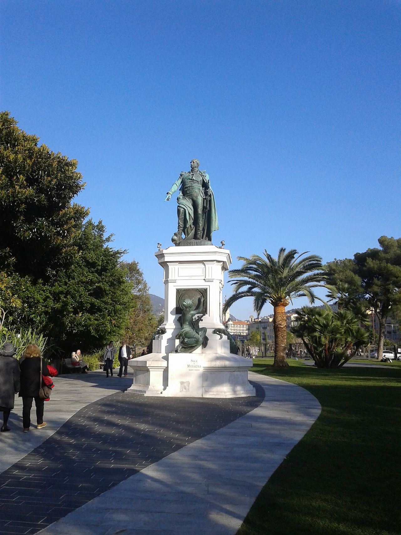 마세나 서점, 마세나 레스토랑, 마세나 고등학교… 마세나 광장 주변엔 동명을 가진 샵과 기관도 많다. André MASSENA [1758-1817] 니스에서 태어난 인연이 있어서, 평범한 군인에서 비범한 사령관 직위까지 올라가 프랑스혁명 전, 나폴레롱 전을 치르신 분이라서, 그 이름을 높이 기억하고 후손에게 길이길이 이야기하고 싶어서, 수 많은 사람들이 지나가는 위치에, 프로므나드 뒤 빠이옹 정원을 무심코 걷다가도 보이는 '거대한 물거울' 공간을 지나 다음 구간에 카리스마 넘치는 이분의 동상이 있다. 이제 아는 척을 하고 지나가셔야 되겠지요.. [청동 손가락이 명합니다!] 포스는 엄숙함 사령관의 힘을 보여주신다. 옷감에서부터 군기가 드러나는 의상이다. 지중해 바람에도 멋지게 휘날릴 것 같은 망토 외투 , 전쟁 준비 완료한 검을 끼고 계신다. 도시를 걸으면서 레이저 눈으로 두리번거리면 신시가지 쪽으로 마세나 고등학교가 있는데 학교 건립시 재정적으로 도움을 주었다 한다. 우리 가족은 이곳을 지나칠 때마다 눈길이 매번 간다. 딸아이가 다녔던 추억이 있어서다. 관광객들이 자기네 학교 앞에서 사진을 찍는다고 얼굴에 웃음을 띄우며 조잘댔었다. 잔디 바닥에 앉아 햇살을 맞으며 도란도란 거리는 젊은 청춘들은 거의 이 고등학교 학생들일 게다.