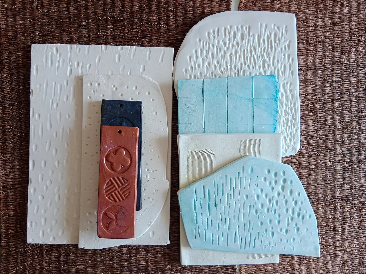 밀대로 흙덩어리를 일정한 두께로 밀어서 틀을 목판화처럼 만든다.그리고 흙 위에 형상을 새긴 다음, 흙 위에 물감을 바른 후, 종이에 찍어내는 형식이다. 마치 쉬운 길을 알게 된 거처럼 뿌듯했다