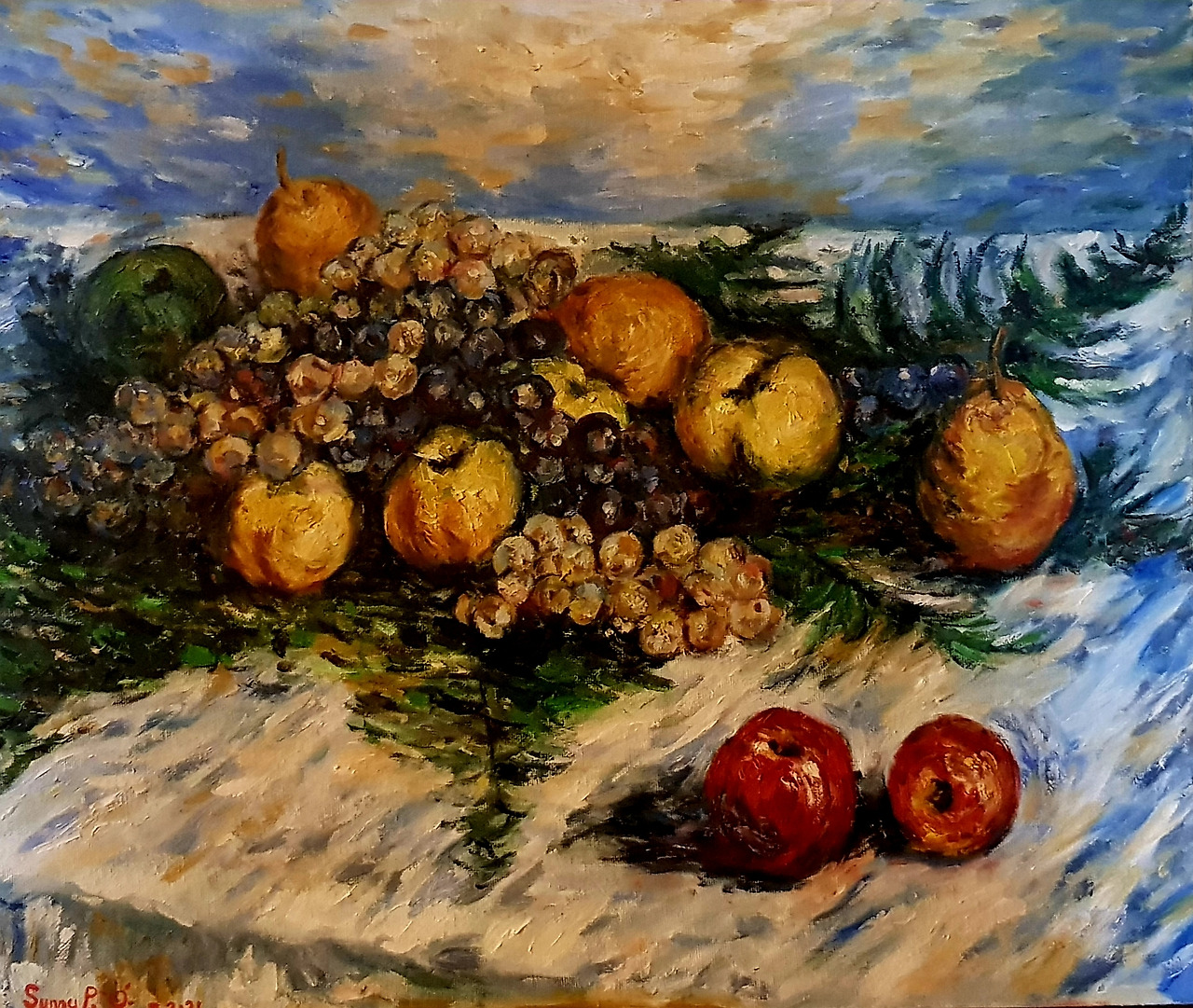 가장 먼저 도전한 작품은 모네의 "과일이 있는 정물"