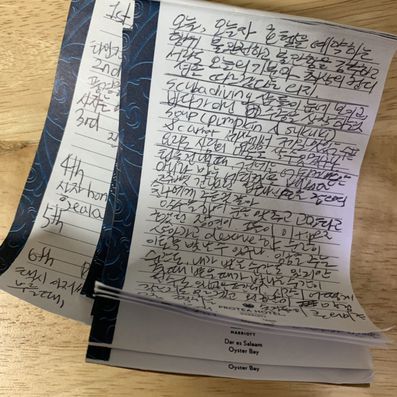 드오니스 셰프가 세상에서 제일 맛있는 펌킨, 수주키, 당근 수프를 매일 밤 해줬다. 나는 이렇게 맛있는 수프를 내 생애 먹어본 적이 없고, 음식으로 사람의 마음을 살 수도 있다는 걸 내가 가진 모든 세포로 느낀 저녁이 3번이나 있었다. 셰프가 요리할 때 괜히 옆에 가서 얼쩡거리는 시간들이 좋았다.