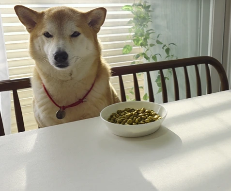 반짝이는 눈빛과 텅 빈 밥그릇에서 알 수 있어요.