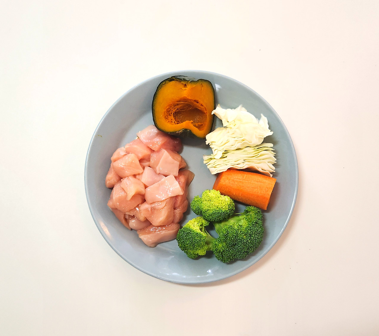 닭가슴살, 단호박, 당근, 브로콜리, 양배추.