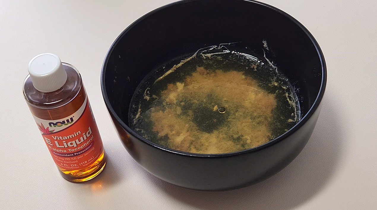 4. 고기 건진 육수에 아연과 비타민 E를 첨가하고 믹싱볼에 뿌리기