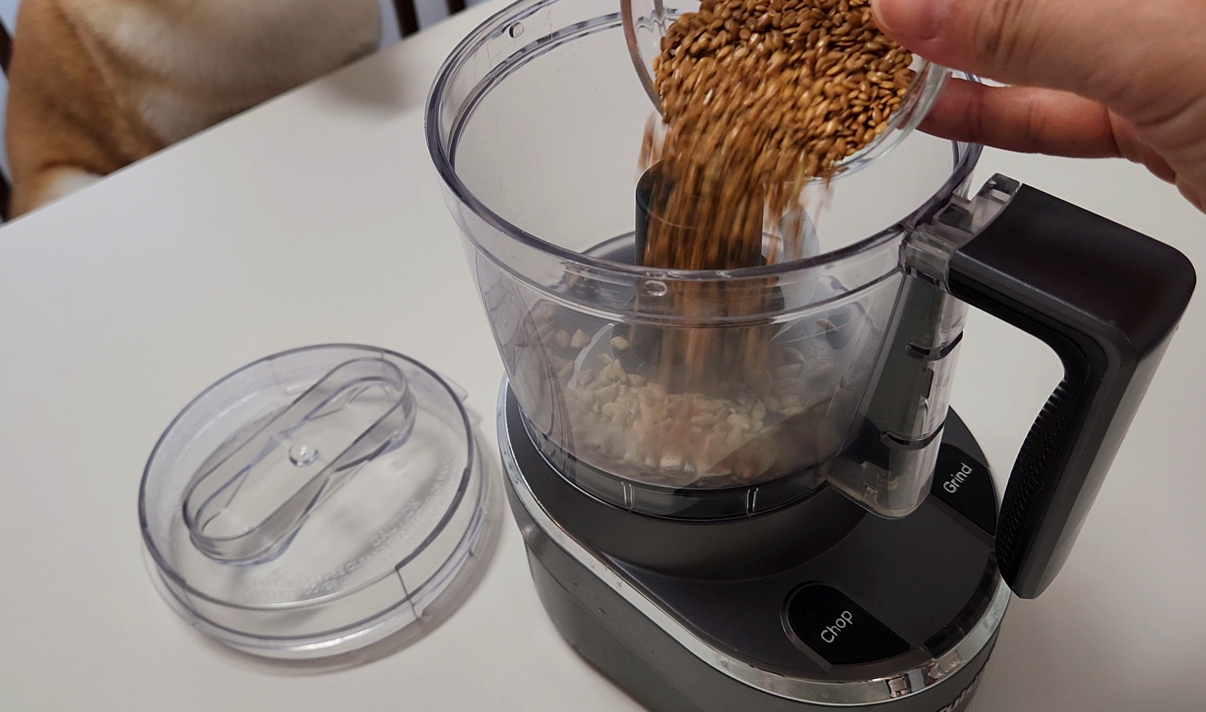 2. 해바라기씨와 아마씨, 말린 미역을 푸드프로세서나 그라인더로 갈고 믹싱볼에 담기