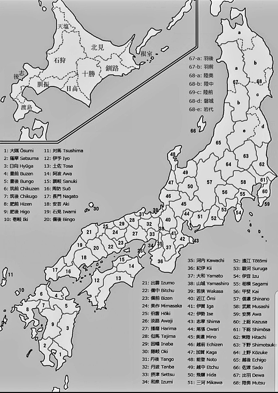 모두 율령국이라고 하는 고대 일본 행정구역 개수를 의미.