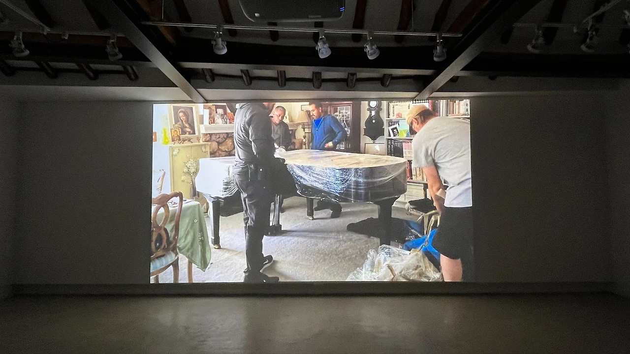 이 과정에서 점차 발견되었던 사람들은 발견하는 사람으로 나아간다. 〈오선보 이야기〉가 전시되는 한희원미술관 역시 발견되어 새로운 정체성을 덧입힌 장소이다. 2015년 광주를 거점으로 작업활동을 하던 작가 한희원이 고향 동네 양림의 한 한옥을 사들여 미술관으로 개축했던 것이 한희원 미술관의 시작이었다. 1960년 혹은 1970년대에 지어진 주거공간을 그대로 미술관으로 활용하였기에, 완벽하게 직사각형을 이루지 않는 공간으로 구성되었다. 그렇다하더라도 한희원의 회화 작업이 벽에 딱 맞게 걸려 전시되었을 때에는 이러한 비대칭이 크게 인식되지 않았다. 그러나 단채널 영상 작업인 〈오선보 이야기〉가 투사될 때, 벽 사이의 대칭은 눈에 띄게 어긋나 왜곡된 화면을 만들어낸다.