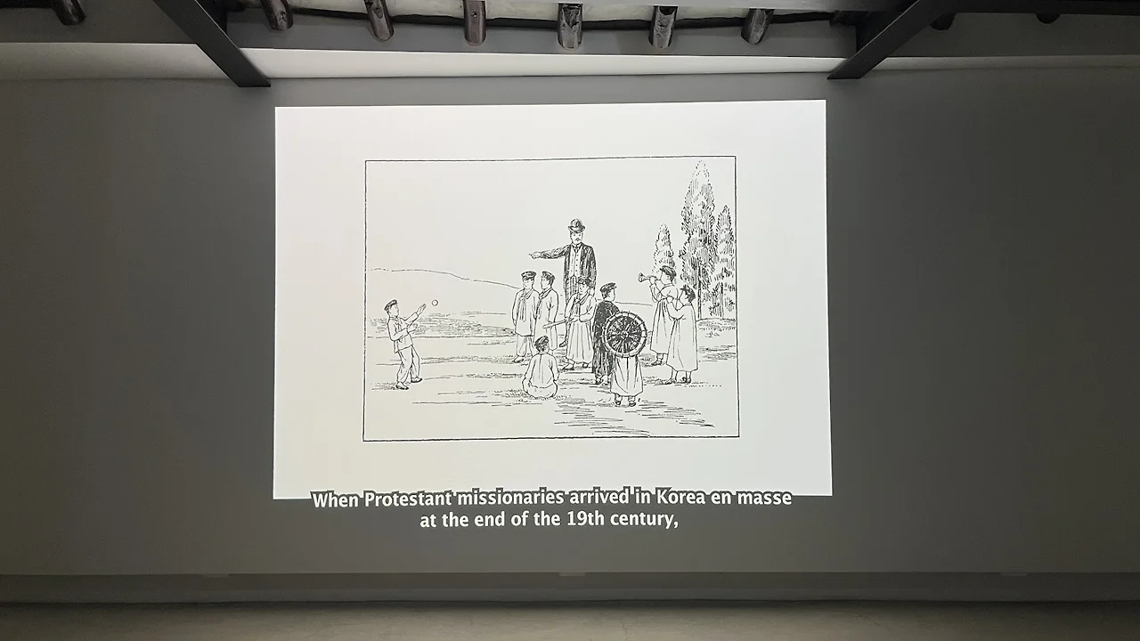 “우리는 오직 하나의 특수가 보편의 장소를 찬탈했기 때문에, 그리고 찬탈했을 때 보편의 윤곽을 얼핏 엿보았다.” 이 문장을 9년 전 처음 읽었을 때 이해하지 못했다. 〈오선보 이야기〉를 보고 나서야 이해했고 마음에 와닿았다. 김영은은 흘러가듯 과거의 어떤 특수의 시점과 현재의 또다른 특수의 시점을 병치한다. 4부 합창을 듣지 못하고, 다섯 개 음 밖에 가지지 못한 “음악적으로 능력이 있어 보이지 않는” 사람들은 자신들이 반음이 생소하다는 것을 이해받을 때까지 기다리다 평균율의 음계에 익숙해지도록 교육받았다. 물론 그 과정에서 약탈만 있었던 것은 아니다. 선교사들이 조선인들의 음악적 관습을 이해하고 서구 음악의 토착화를 위해 노력했던 것은 부정할 수 없다. 그러나 그 과정에서도 오선보는 변함 없는 기준이되어 조선인들의 일상에 파고들었다. 따라서 무궁한 애정과 이해가 서려있음에도 서구인들의 훈계는 찬탈로 귀결될 수 밖에 없다. 오직 오선보라는 특수만이 보편으로 공고하게 자리 잡았기 때문이다. 주지하다시피 오선보가 모든 지역의 특수를 담아내지 못한다. 양금과 가야금의 울림이 교차하는 사이로, 정간보와 오선보가 대조된다. 〈오선보 이야기〉에서 서양음악을 먼저 배운 전통음악가는 청음 훈련에서 느낀 혼란을 들려준다. “악보가 없이 전승되는 음악을 교육하려다 보니까 가장 보편적으로 오선보에 곡을 적게 되고, 또 이게 배운 사람이 가장 빠르게 습득할 수 있는 방법이 되었습니다.” 현재에 전통음악을 하는 이들에게 오선보는 항상 자명한 기준이 될 수 없어 혼란을 부추기더라도, 차크라바르티의 표현 그대로 “필요불가결하면서 동시에 부적합한” 보편이 된다.
