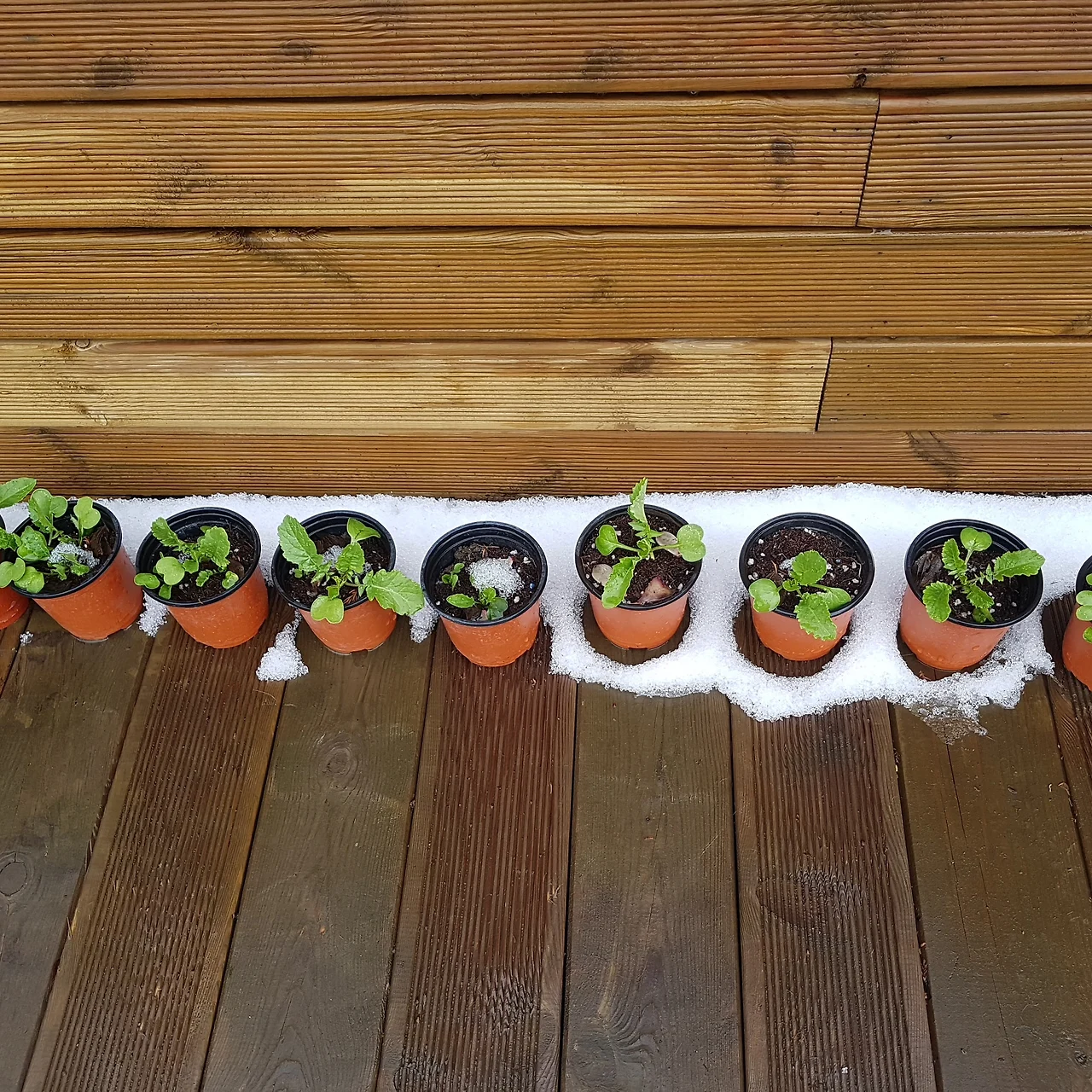 텃밭의 무법자 '귀여운 꼬마 달팽이'는 무와 배추씨앗이 열심히 키워놓은 손가락 길이의 무와 배추에 여기저기 구멍을 만들면서 먹었고 뿌리만 남아있는 배추와 무도 있었다.(범인은 달팽이와 이름 모를 벌레)