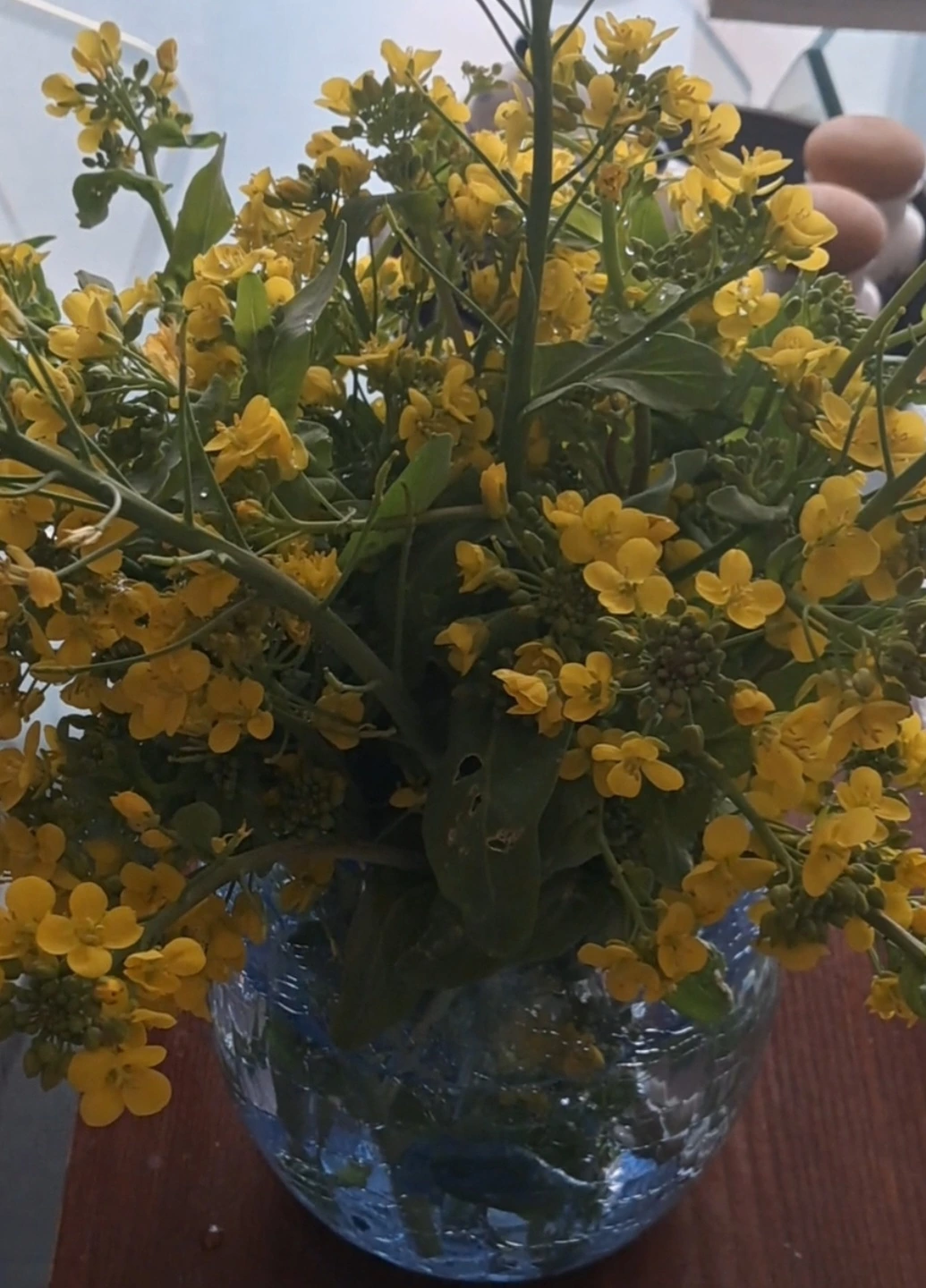 배추꽃은 만발해서 꽃병으로 자리를 옮겼다.