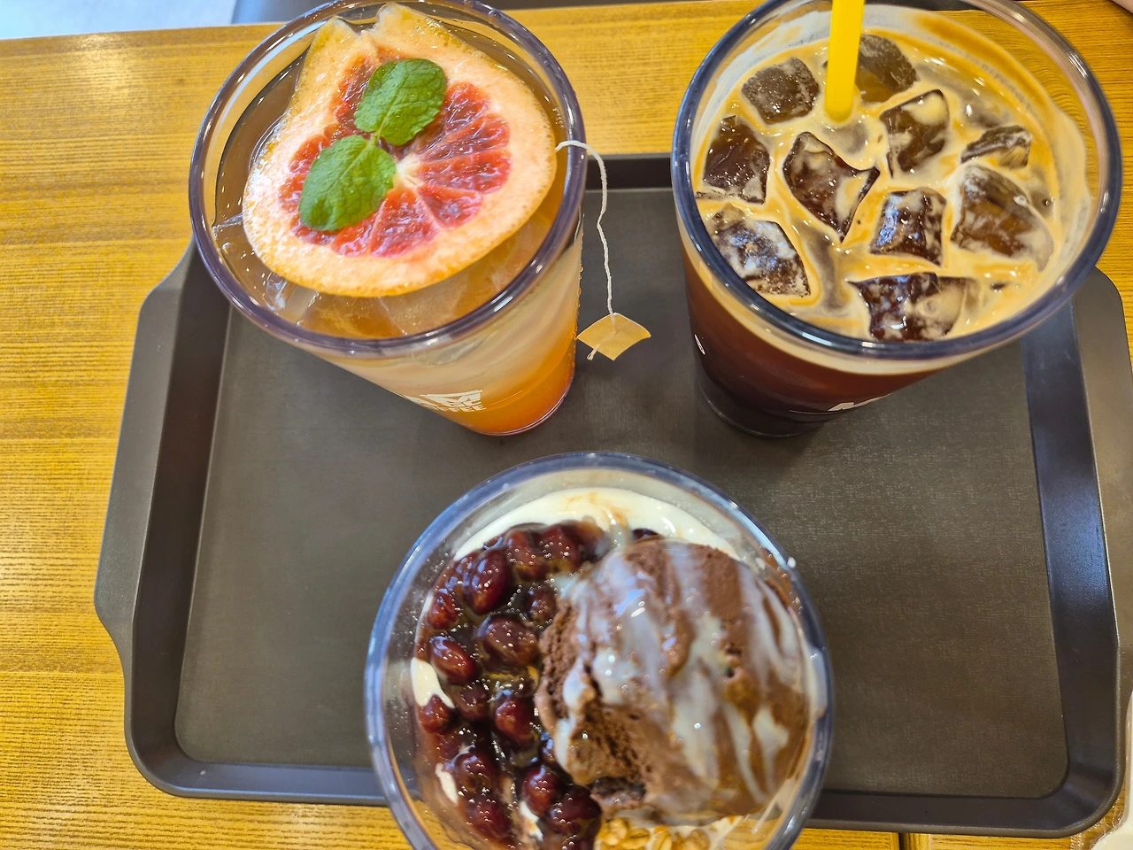 아들은 컵빙수, 남편은 아아, 나는 허니자몽블랙티
